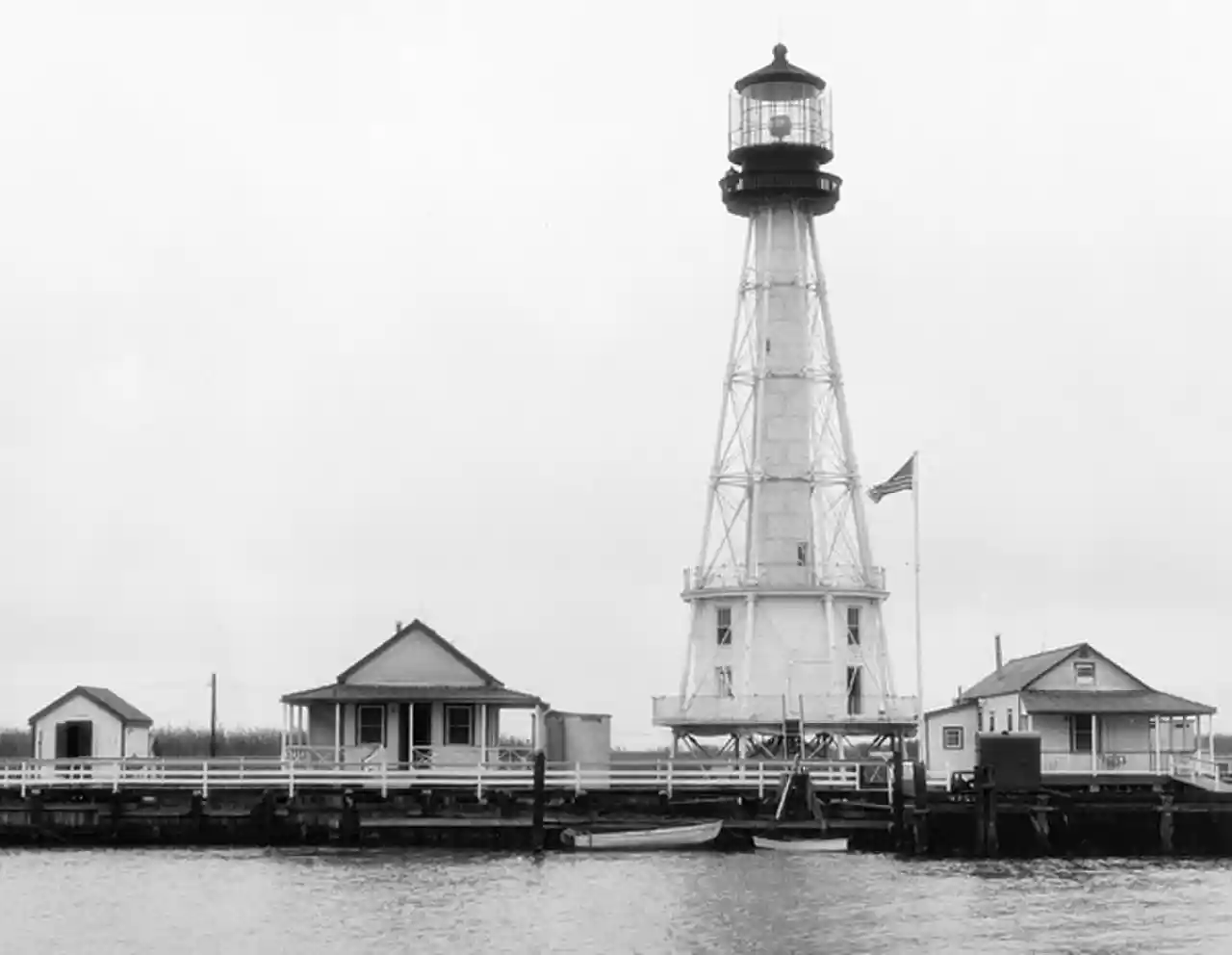 The South Pass Light, also known as the Port Eads LighthouseSouth Pass Range Lighthouses, also called the "Port Eads Lighthouse". South Point Light, or Gordon's Island Light, are a pair of lighthouses located on Gordon's Island at South Pass, in Plaquemines Parish, Louisiana (USA), one of the primary entrances to the Mississippi River Delta from the Gulf of Mexico. The light station was established in 1831 and is still active. Read more on Wikipedia