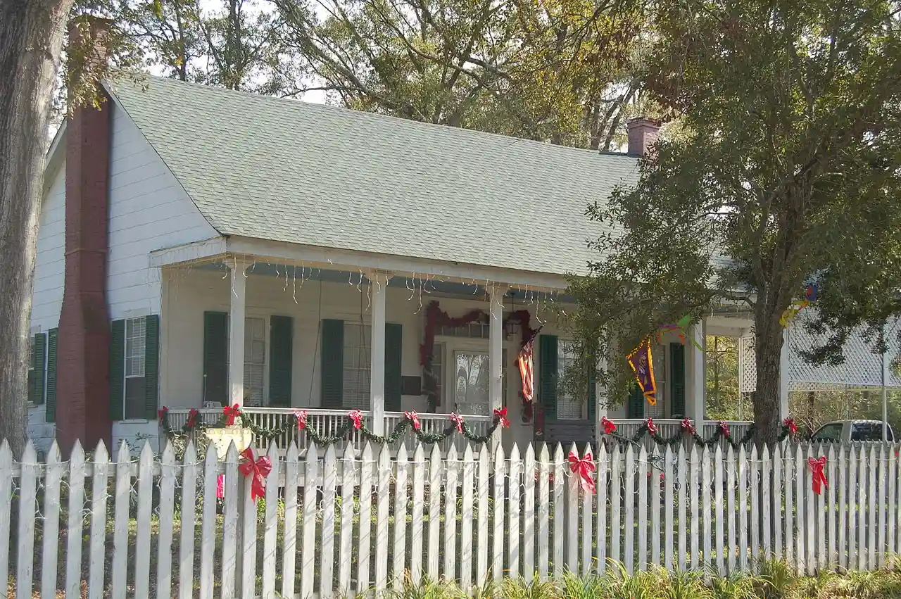 Green Shutters, on Franklin St. in Tangipahoa, Louisiana, was built around 1850. It includes Greek Revival style. It was listed on the National Register of Historic Places in 1982. Read more on Wikipedia