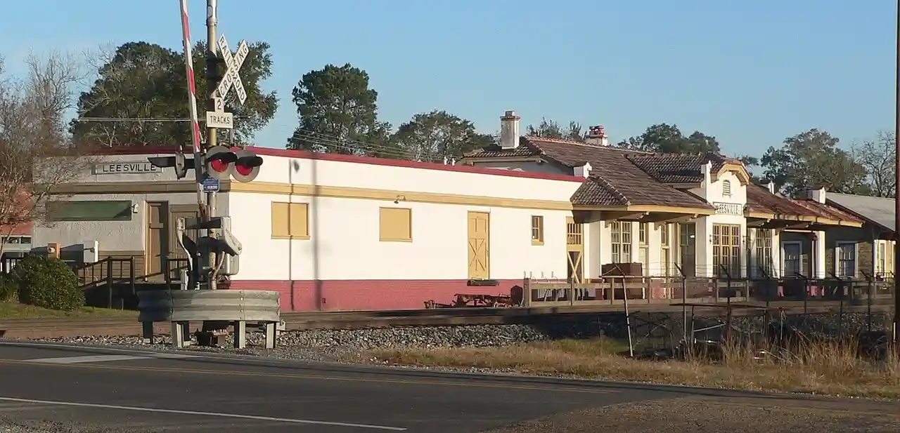 The Kansas City Southern Depot, now the Museum of West Louisiana, is a former railway station in Leesville, Louisiana. It was built by the Kansas City Southern Railway in 1916. It served as a combination of passenger station, freight station, and crew change point. The station was a busy shipping point during the Vernon Parish lumber boom in the early part of the 1900s. A local KCS train served the station into the 1960s. Read more on Wikipedia