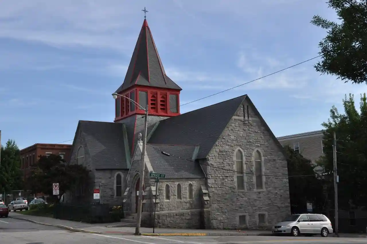 Trinity Episcopal Church is an historic church building at 247 Bates Street in Lewiston, Maine. It is a modestly sized yet handsomely decorated Gothic Revival building, designed by C.C. Haight of New York City and completed in 1882. The building was listed on the National Register of Historic Places in 1978. Read more on Wikipedia