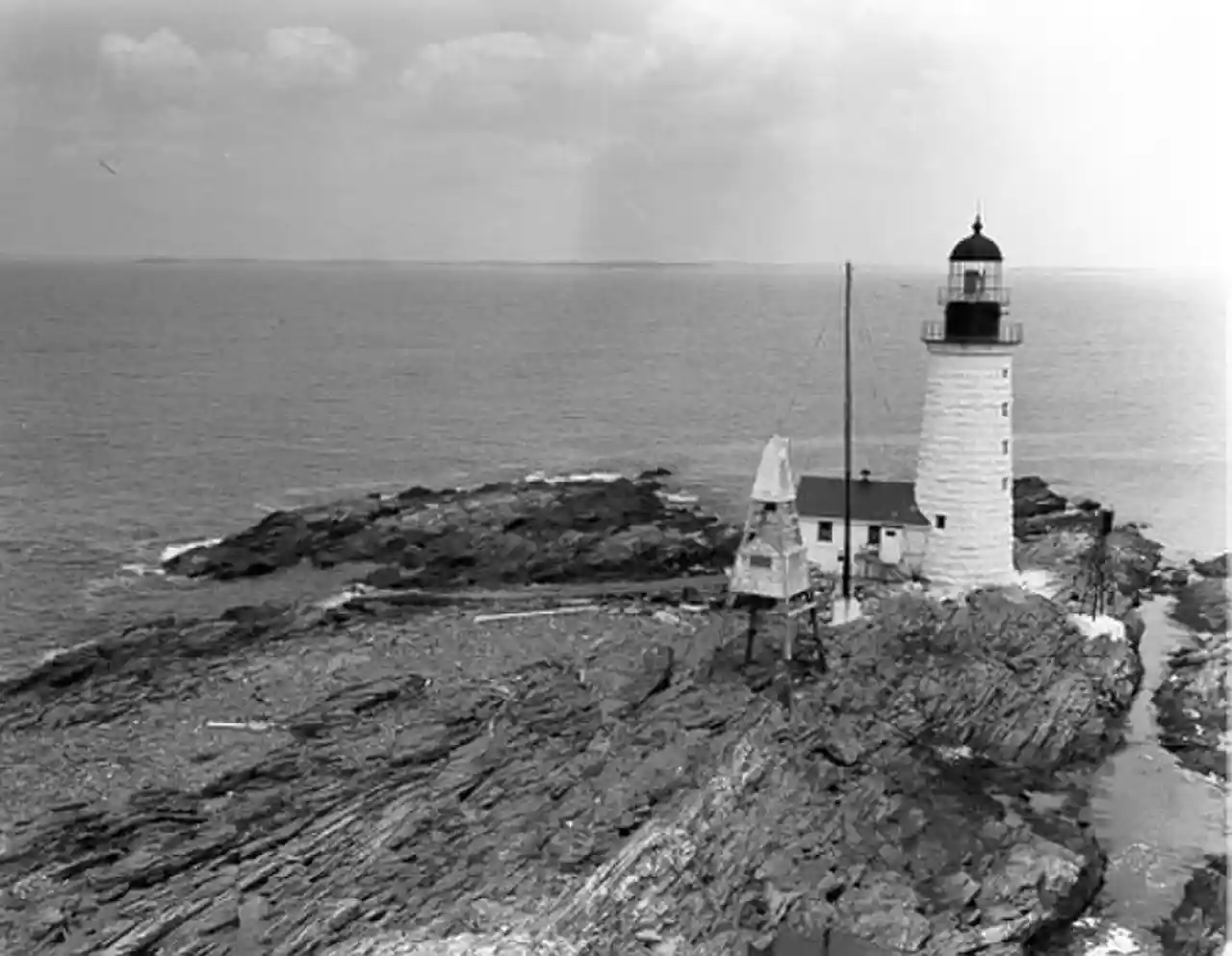 Halfway Rock Lighthouse is a lighthouse located on a barren ledge in Casco Bay, Maine. The lighthouse tower, which has a height of , and the attached ex-boathouse are all that remains, as the other buildings have been taken away in storms. The name "Halfway Rock" comes from the position of the rock which is halfway between Cape Elizabeth and Cape Small, the southwest and northeast extremities of Casco Bay, which are about apart. Read more on Wikipedia
