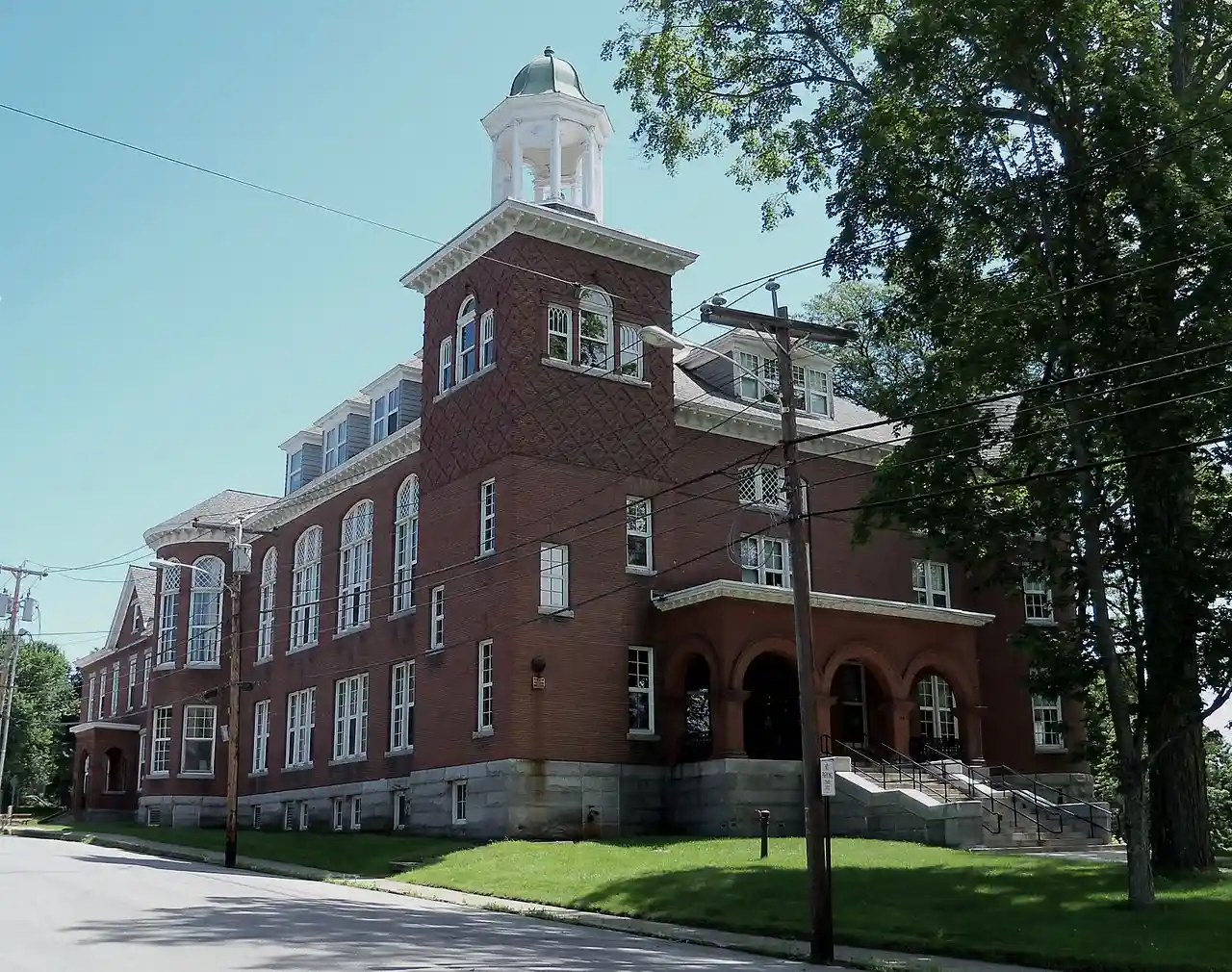 Merrill Hall, located at Main and Academy Streets in Farmington, Maine, is the oldest building on the campus of the University of Maine at Farmington. It was designed by George M. Coombs of Lewiston and built in 1898, replacing the school's original 1864 building, but includes an ell dating to 1888. It was listed on the National Register of Historic Places in 1980. It currently houses administrative offices of the university. Read more on Wikipedia