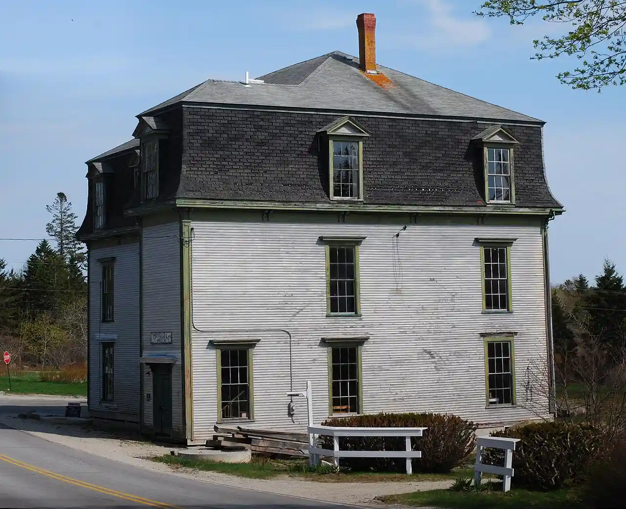 The Brooklin IOOF Hall is an commercial and fraternal society building at the junction of Center Harbor Road and Reach Road (Maine State Route 175) in Brooklin, Maine. The three-story Second Empire style building was erected in 1875, and is one of the small community's largest 19th-century buildings and one of its architecturally most significant. It was listed on the National Register of Historic Places in 1990. Read more on Wikipedia