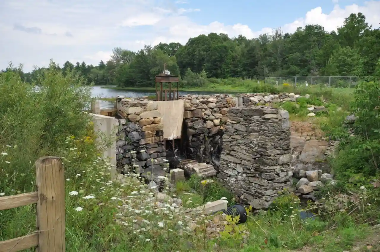 The Dinsmore Grain Company Mill was a historic early 20th-century mill building on Branch Mill Road in China, Maine, USA. Built in 1914 on a site with nearly 100 years of industrial use, it was (according to its 1979 listing on the National Register of Historic Places) a well-preserved and functional period water-powered grist mill and sawmill. It was demolished in 2017, and delisted from the National Register in 2023. Read more on Wikipedia