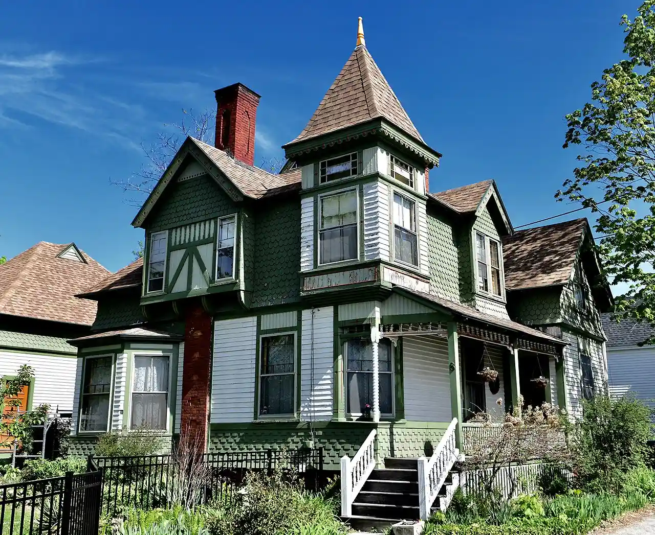 The Foster-Redington House is a historic house at 8 Park Place in Waterville, Maine. Built in 1883, it is a fine example of Queen Anne architecture, supposedly the city's first example of the style. It was built by Moses Coburn Foster, a well-known builder in the state, as his private residence. Moses owned M.C. Foster & Son, general contractors and builders. An advertisement for the business lists its location as 7 Park Place, which was the home built for his son, Herbert Foster. Herbert died at 38 years old. Herbert's home is as unique as Moses' but has not been restored, but instead, turned into two apartments. Read more on Wikipedia