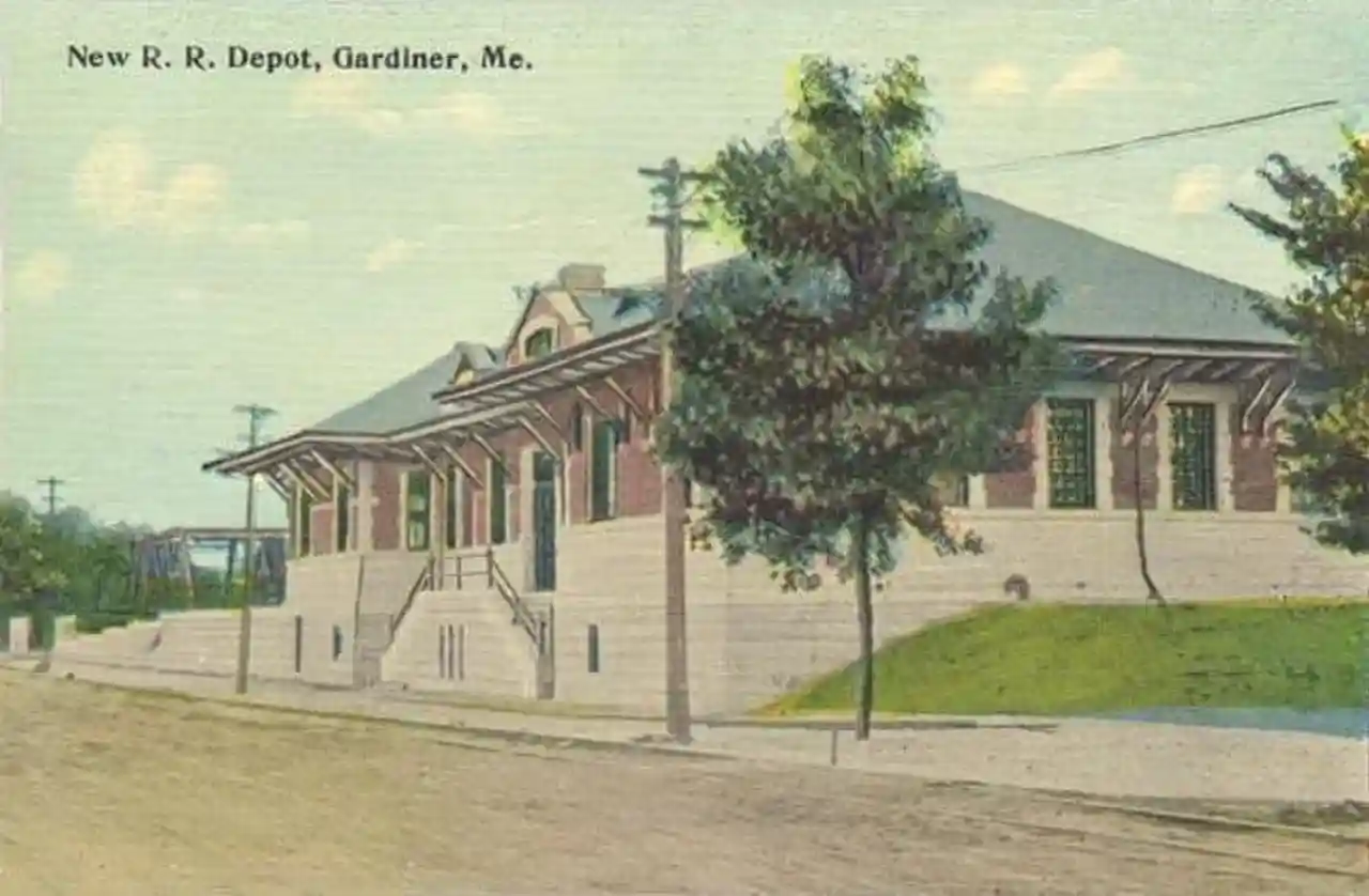 The Gardiner Railroad Station is a historic former railroad station at 51 Maine Street in Gardiner, Maine. It was built in 1911 by the Maine Central Railroad, and was in use as a station until the 1950s. It has since seen a variety of adaptive commercial uses. A distinctive example of Romanesque architecture, it was added to the National Register of Historic Places on October 29, 1982. Read more on Wikipedia
