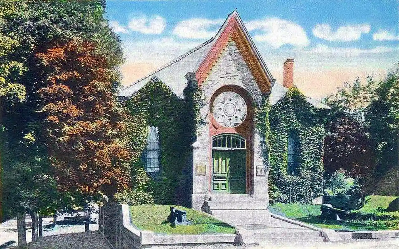 Memorial Hall is a historic civic building at Church and West School Streets in Oakland, Maine. It was built in 1870 as a memorial to the community's American Civil War dead. It is a remarkably sophisticated example of Italian-Gothic architecture for a rural community, expensive to build, and was listed on the National Register of Historic Places in 1977. Read more on Wikipedia