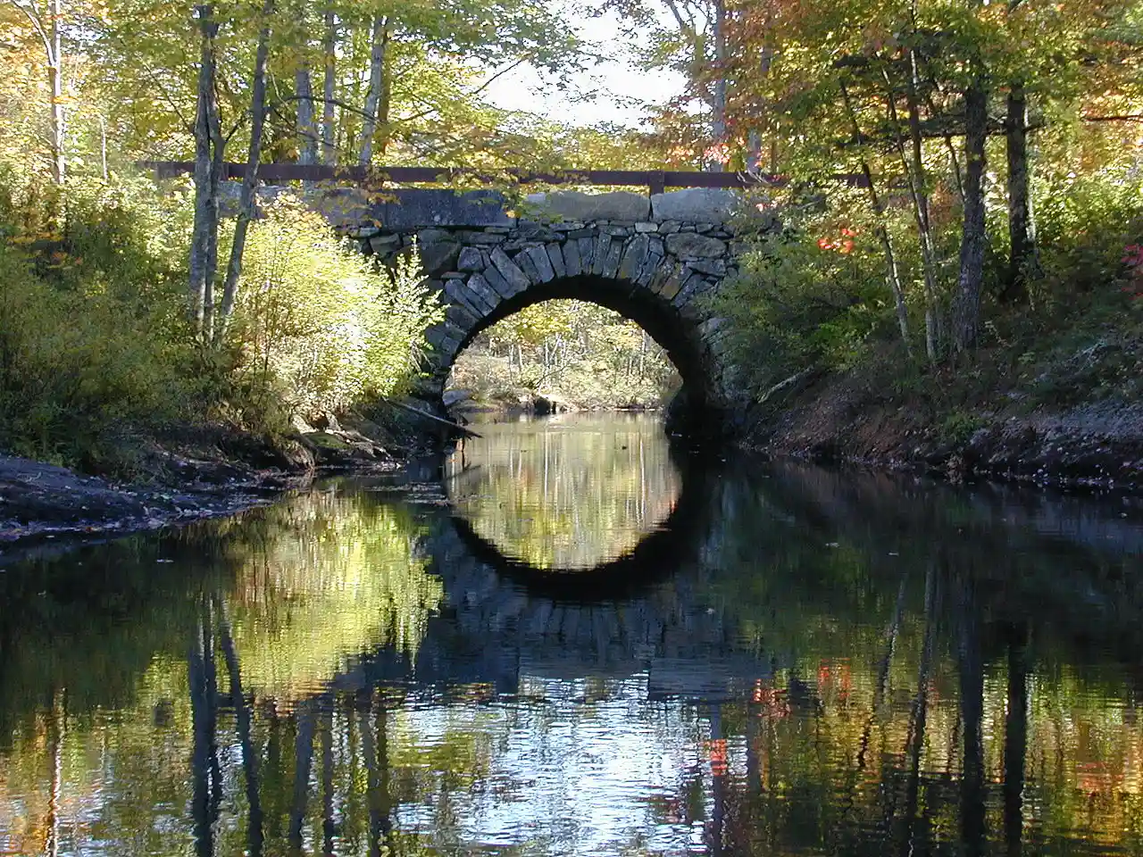 The Arch Bridge is a historic stone arch bridge, carrying Benner Road over the Pemaquid River near the village of Bristol Mills in Bristol, Maine. Probably built before 1800, it is one of the state's oldest stone bridges, and is remarkably well-preserved for its age. It was listed on the National Register of Historic Places in 2003. Read more on Wikipedia