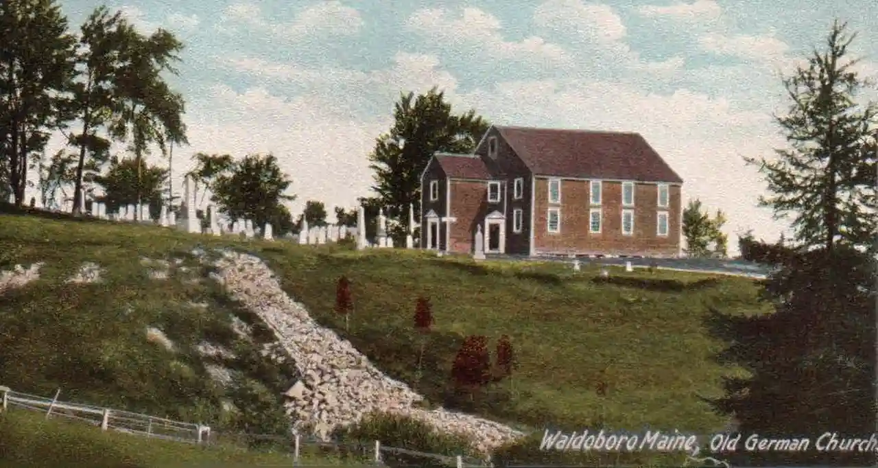 The German Church and Cemetery, also known as the Old German Meeting House, is a historic German Lutheran church and cemetery at 235 Bremen Road (Maine State Route 32) in Waldoboro, Maine. Built in 1772, it is a well-preserved 18th-century church, which played an important role in the lives of the area's early German immigrants, and in the establishment of the town of Waldoboro. It was listed on the National Register of Historic Places in 1970. Read more on Wikipedia