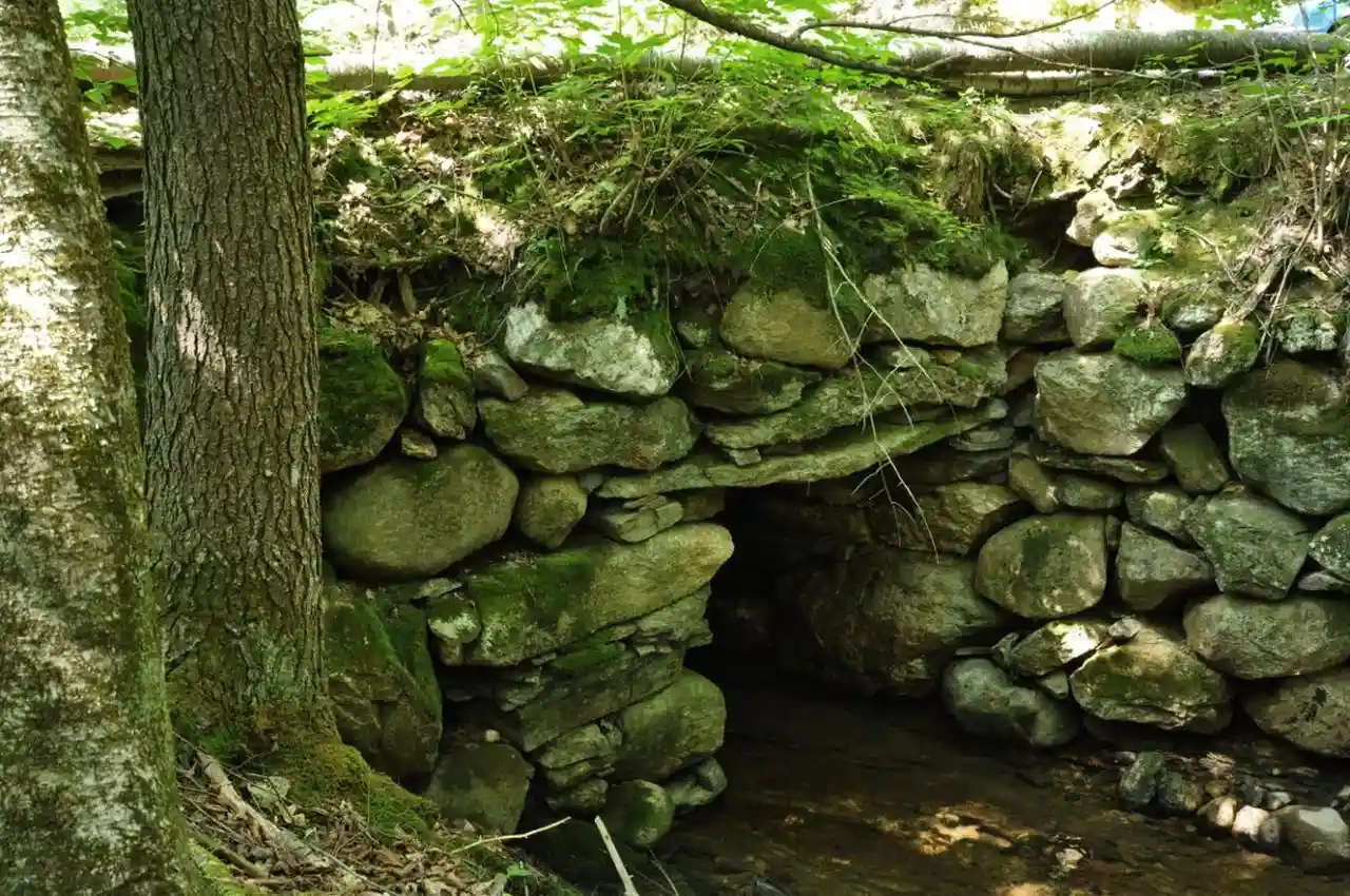 The Churchill Bridge is a historic bridge carrying Mountain Road over Bicknell Brook, in a rural corner of Buckfield, Maine. It is one of three documented stone lintel bridges in the state. It is a dry laid rubble stone structure which carries the road over the stream at a height of about . The total length of the bridge is about , and the clear span over the brook is . The span is formed by five massive ledge stones laid on rubble abutments about above the stream. Additional rubble is laid above to form the bed of the gravel roadway. The bridge crosses the stream at a slight angle, so its abutments are extended with wingwalls to the northwest and southeast. Read more on Wikipedia