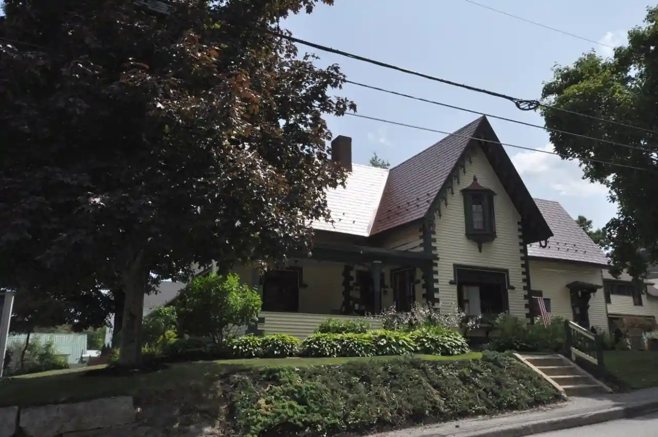 The Elisha F. Stone House is a historic house at the corner of High and Gothic Streets in South Paris, Maine. Built in 1854, it is one of the finest Gothic Revival houses in Oxford County. The house was designed by Portland-based Henry Rowe, and built for Elisha F. Stone, a local merchant, tailor, and postmaster. It was listed on the National Register of Historic Places in 1983. Read more on Wikipedia