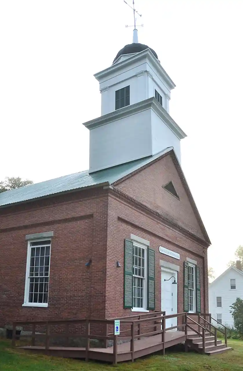 The Lovell Village Church is a historic church on Church Street in Lovell, Maine. It was built, and probably designed by, Ammi Cutter, a brickworker of some renown in the interior of western Maine. Completed in 1851, it is an architecturally significant example of Greek Revival. Its construction was occasioned by a slavery-related split in the local congregation. The building was added to the National Register of Historic Places in 1986. Read more on Wikipedia