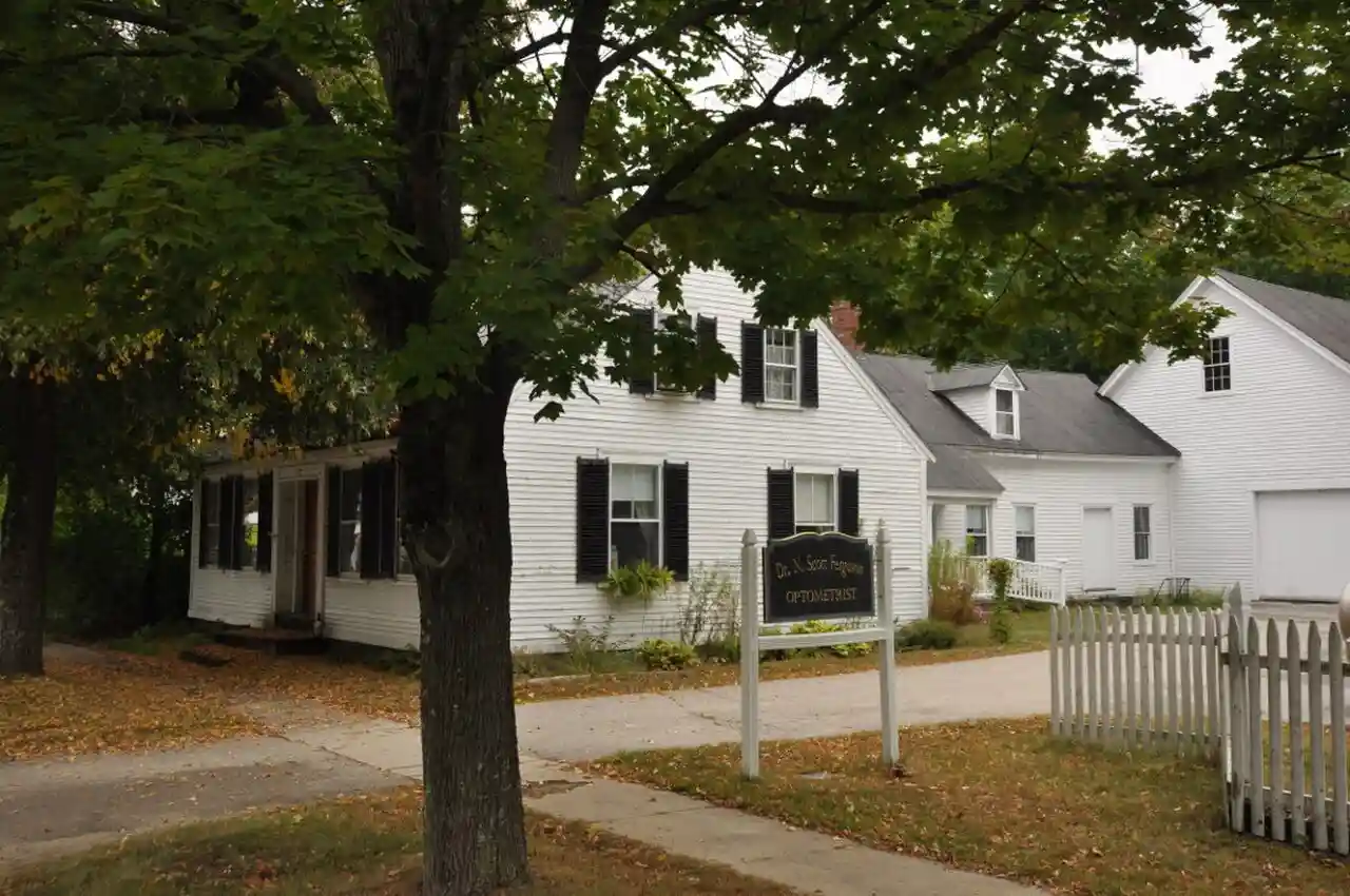 The Marion Parsons House is a historic house at 179 Main Street in Fryeburg, Maine. It is located on the southeast side of Main Street, opposite River Street and two doors west of Elm Street. The main block of the house, built c. 1838 by a tailor named Robert Tonge, is a modest -story Cape style wood-frame structure with a gable roof. The exterior is finished in clapboards, with chimneys at either end. It is five bays wide, with a recessed center entry that is framed by sidelights and a molded architrave. A -story ell, an 1870s replacement for an earlier one, extends to the rear of the main block. This ell is attached to a -story barn which has Greek Revival styling.National Register nomination for Marion Parsons House (1987); available by request from the National Park Service Read more on Wikipedia