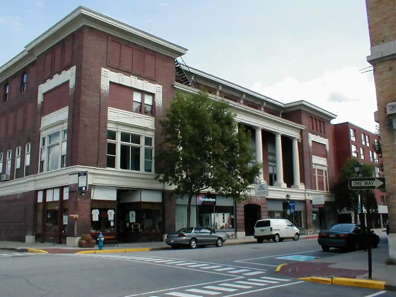 The Mechanic Institute is a historic educational building at 44-56 Congress Street in downtown Rumford, Maine. This handsome four-story brick building was built in 1910 by the Rumford Falls Power Company to provide educational facilities for its workers and their children. It is now owned by the city, and the former educational facilities have been repurposed into a community center. The building was listed on the National Register of Historic Places in 1980. Read more on Wikipedia