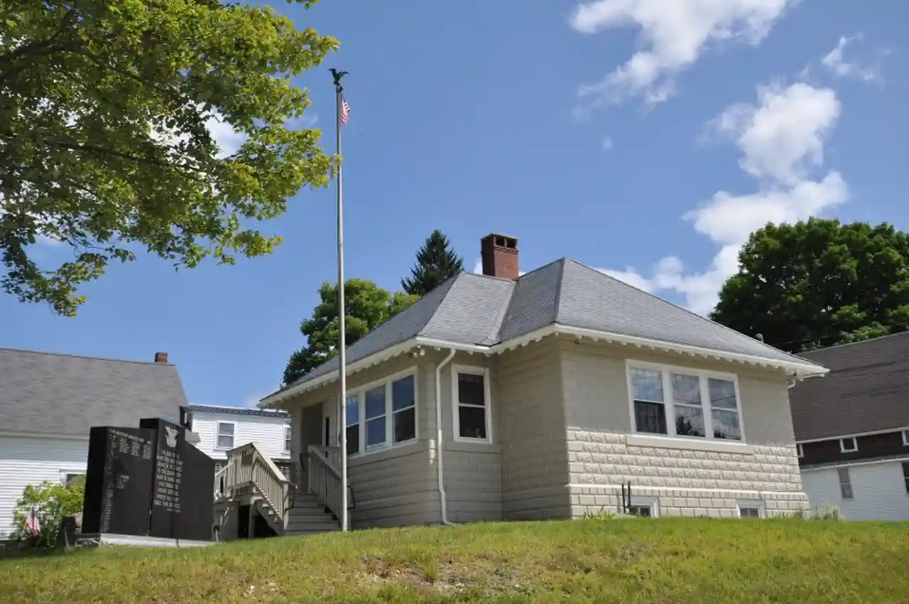 The Soldiers Memorial Library is the public library of Hiram, Maine. It is located at 85 Main Street in the center of the small town, in a small concrete-block building erected in 1915–16. It is architecturally significant as one only two library buildings in the state built using ornamental concrete blocks, and was for this reason listed on the National Register of Historic Places in 2008. Read more on Wikipedia