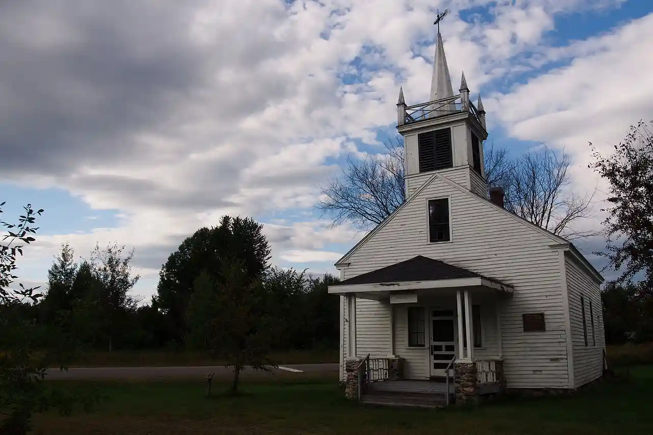 The District No. 2 School is a historic schoolhouse at Pleasant Street and Caribou Road in Passadumkeag, Maine. Built in the 1840s as a school, it later served as a church, town hall, and library. It is now a museum operated by the local historical society, and was listed on the National Register of Historic Places in 1997. Read more on Wikipedia