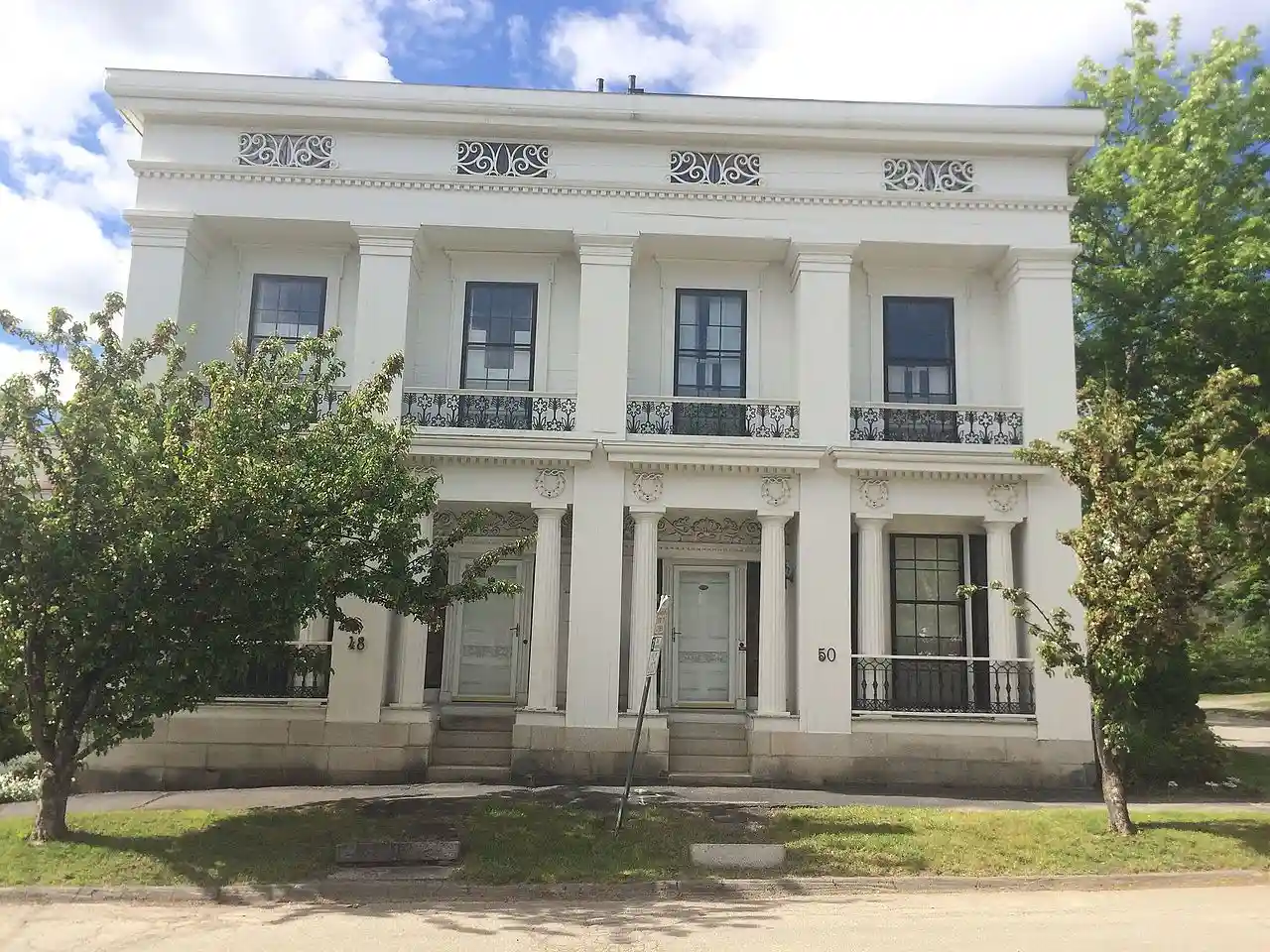 The Jonas Cutting–Edward Kent House is a historic house at 48-50 Penobscot Street in Bangor, Maine. Built in 1836–37, it is one of the city's most unusual and elaborate examples of Greek Revival architecture. Built as a duplex, its first owners and occupants were Edward Kent, mayor and a future Governor of Maine, and his law partner, Jonas Cutting, a future Maine Supreme Judicial Court justice. The house was listed on the National Register of Historic Places in 1973. Read more on Wikipedia