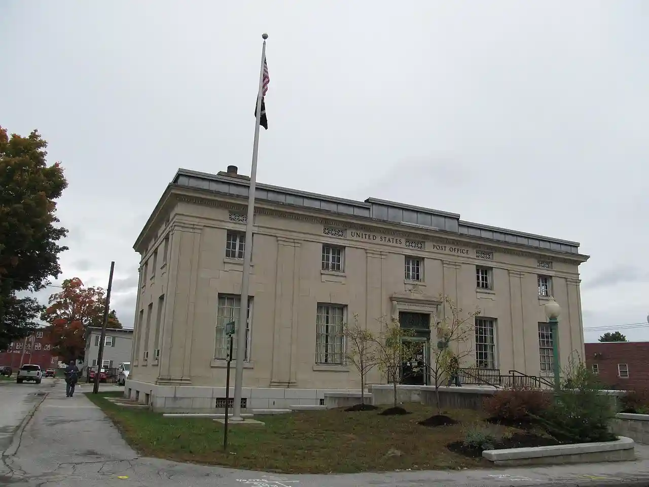 The Old Town Main Post Office is located at 141 Center Street in Old Town, Maine. The Classical Revival building was an early design of the Office of the Supervising Architect under Oscar Wenderoth. Its design was completed in 1912 and construction in 1914 under the provisions of the Tarsney Act. It was listed on the National Register of Historic Places in 1986. Read more on Wikipedia
