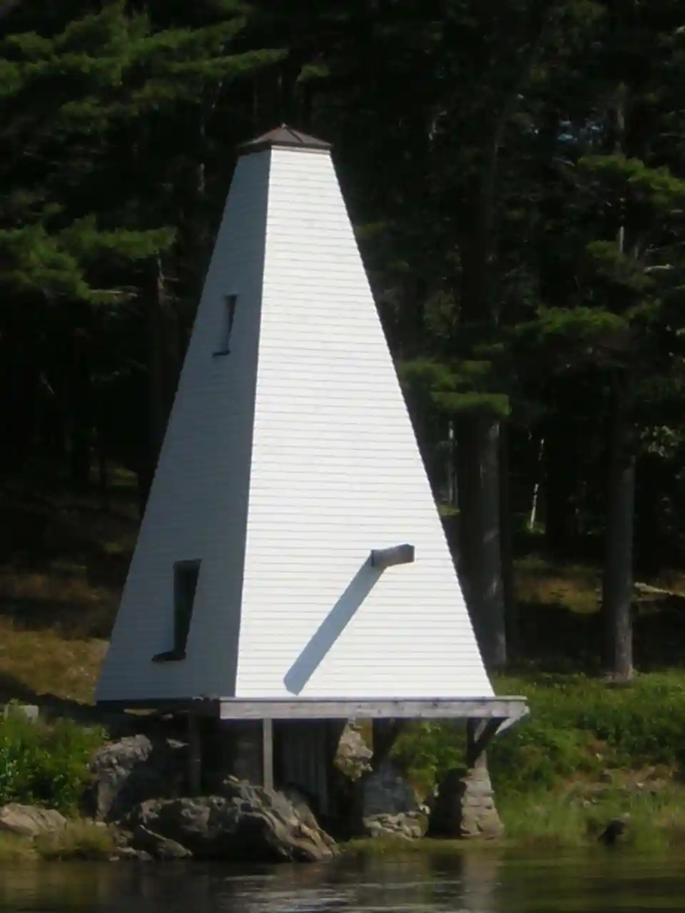 The Fiddler's Reach Fog Signal is a fog signal station located on the Kennebec River in Arrowsic, Maine, in Sagadahoc County. It is about SW of the front light of the Doubling Point Range Lights, and about east of Doubling Point Light. The pyramidal bell structure was built in 1914, two years after a large steamship, the Ransom B. Fuller, ran aground in the fog on this section of the river. Read more on Wikipedia