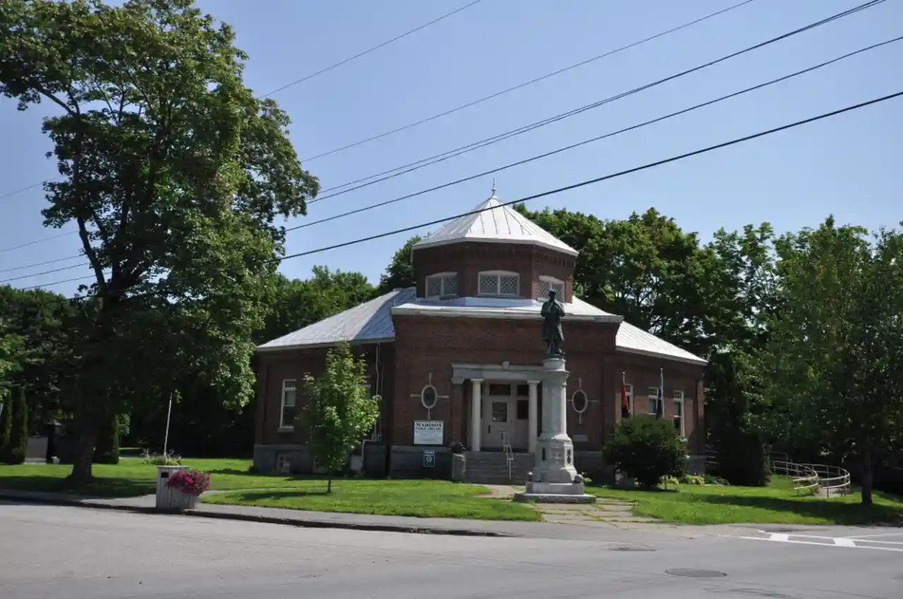 The Madison Public Library is located at 12 Old Point Avenue in Madison, Maine. Built with funding support from Andrew Carnegie, it is one of the architecturally most unusual libraries in the state, with a distinctive octagonal tower and non-rectangular angled elements. It was designed by the local firm of Snow and Humphreys and completed in 1906. The building was listed on the National Register of Historic Places in 1989. Read more on Wikipedia
