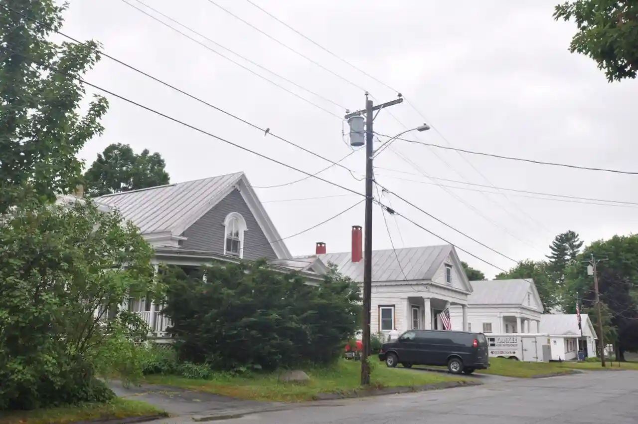 The Temples Historic District encompasses a distinctive collection of Greek Revival houses on Madison Street in the rural village of North Anson, Maine. Built between about 1844 and 1858 were four houses in a row, three of which exhibit classical Greek temple-front facades, and assemblage that is unique in the rural interior of the state. The district was listed on the National Register of Historic Places in 1983. Read more on Wikipedia