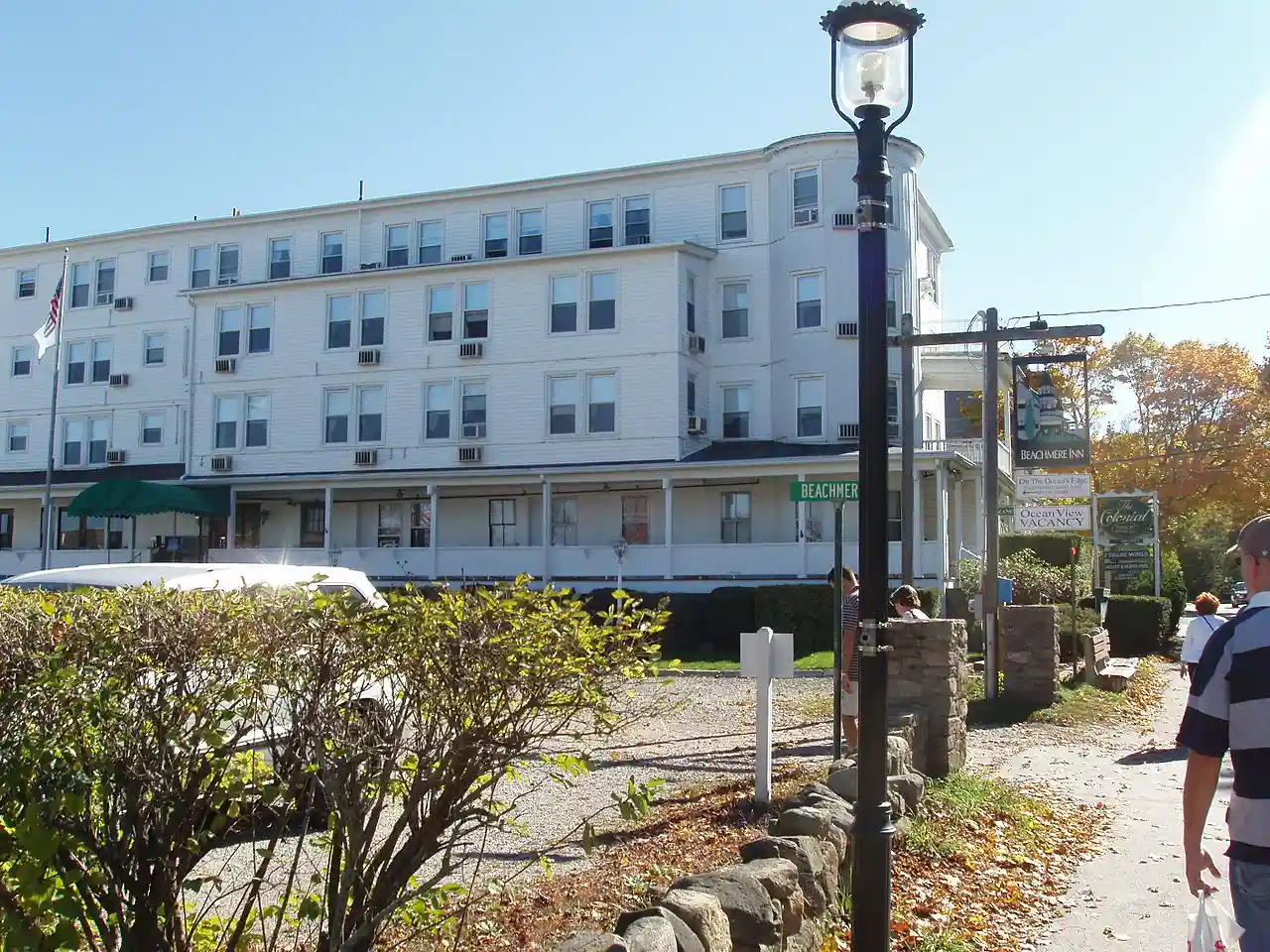 The Colonial Inn is a historic hotel at 145 Shore Road in Ogunquit, Maine. The hotel complex is anchored by an 1890 Queen Anne Victorian hotel that is one of the few surviving resort hotels of the period, and is listed on the National Register of Historic Places. The complex also has rooms in adjacent motel spaces; its amenities include a swimming pool, game room, and dining room serving breakfast. Read more on Wikipedia
