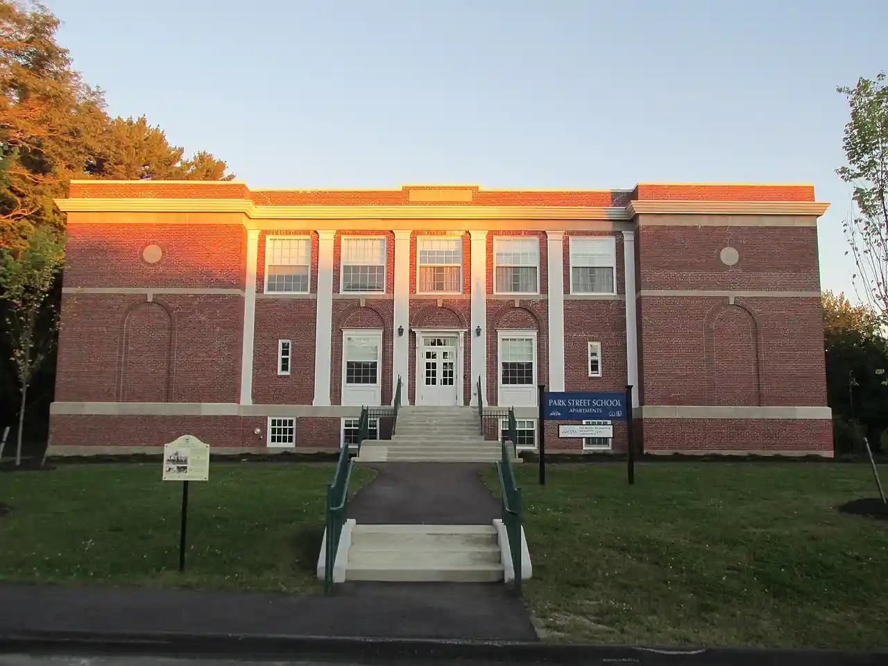 The Old Kennebunk High School, also known as the Park Street School, is an historic former school building at 14 Park Street in Kennebunk, Maine. Built in 1922–23 to a design by Hutchins & French of Boston, Massachusetts, it is historically significant for its role the city's education, and architecturally as a fine example of a "modern" high school building of the period with Colonial Revival styling. It was listed on the National Register of Historic Places in 2011. Read more on Wikipedia
