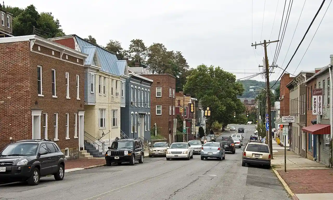 The Greene Street Historic District is a national historic district in Cumberland, Allegany County, Maryland. It is a linear historic district along both sides of Greene Street on the west side of Cumberland. It contains 45 buildings (44 are brick), 37 of which are residential and 8 of which exhibit commercial design characteristics. The earliest buildings in the district are built in the Federal style, followed by buildings erected in the Greek Revival, Italianate, Queen Anne, and Colonial Revival styles. The earliest of the district's resources was constructed about 1820, with the most recent built about 1930. Read more on Wikipedia