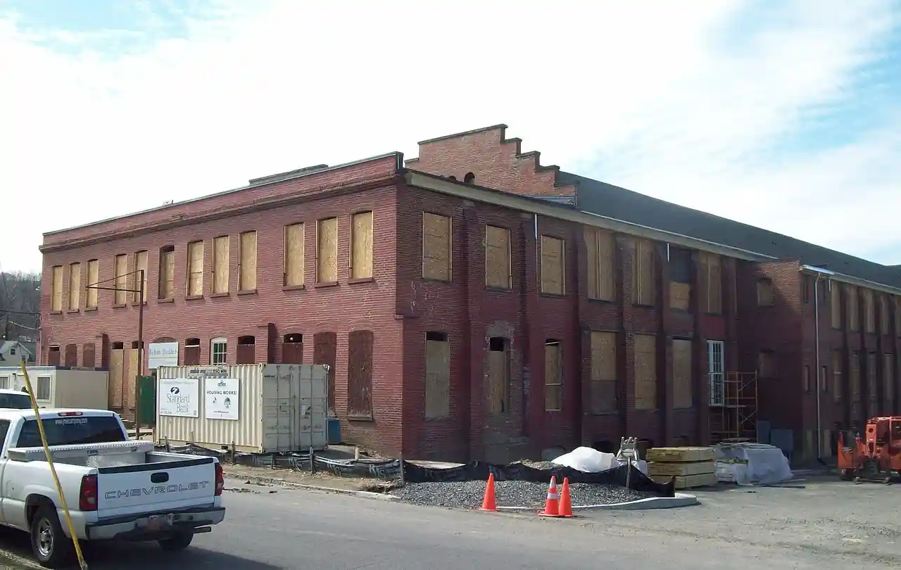 Klots Throwing Company Mill is a historic silk mill located at Cumberland in Allegany County, Maryland, United States. It was built in 1902–1903, and is a long two-story brick building with double-gable roofs and paired stepped parapets. An addition was built in 1909. It was operated by Gentex Corporation and closed in 1972. The building was subsequently used for storage. From 1988 until 2002, the north end of the building housed the Western Maryland Food Bank. The building will be converted to loft apartments. Read more on Wikipedia
