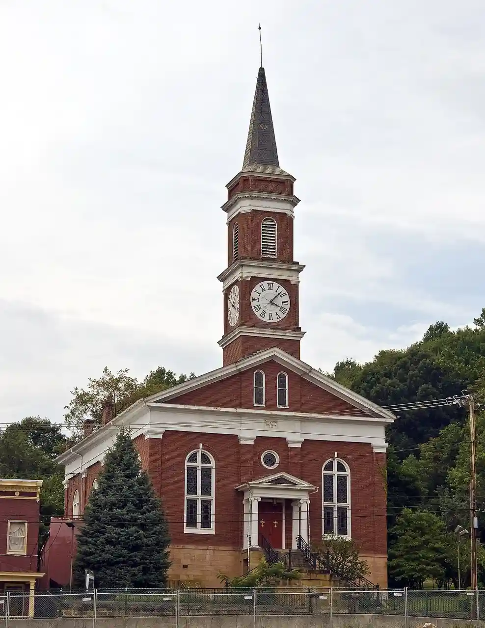 Town Clock Church is a historic church in Cumberland, Allegany County, Maryland, United States. It is a one-story gable-front brick building built in 1848 by its German Lutheran congregation. A tall clock tower rises from the slate roof above the principal facade. Read more on Wikipedia