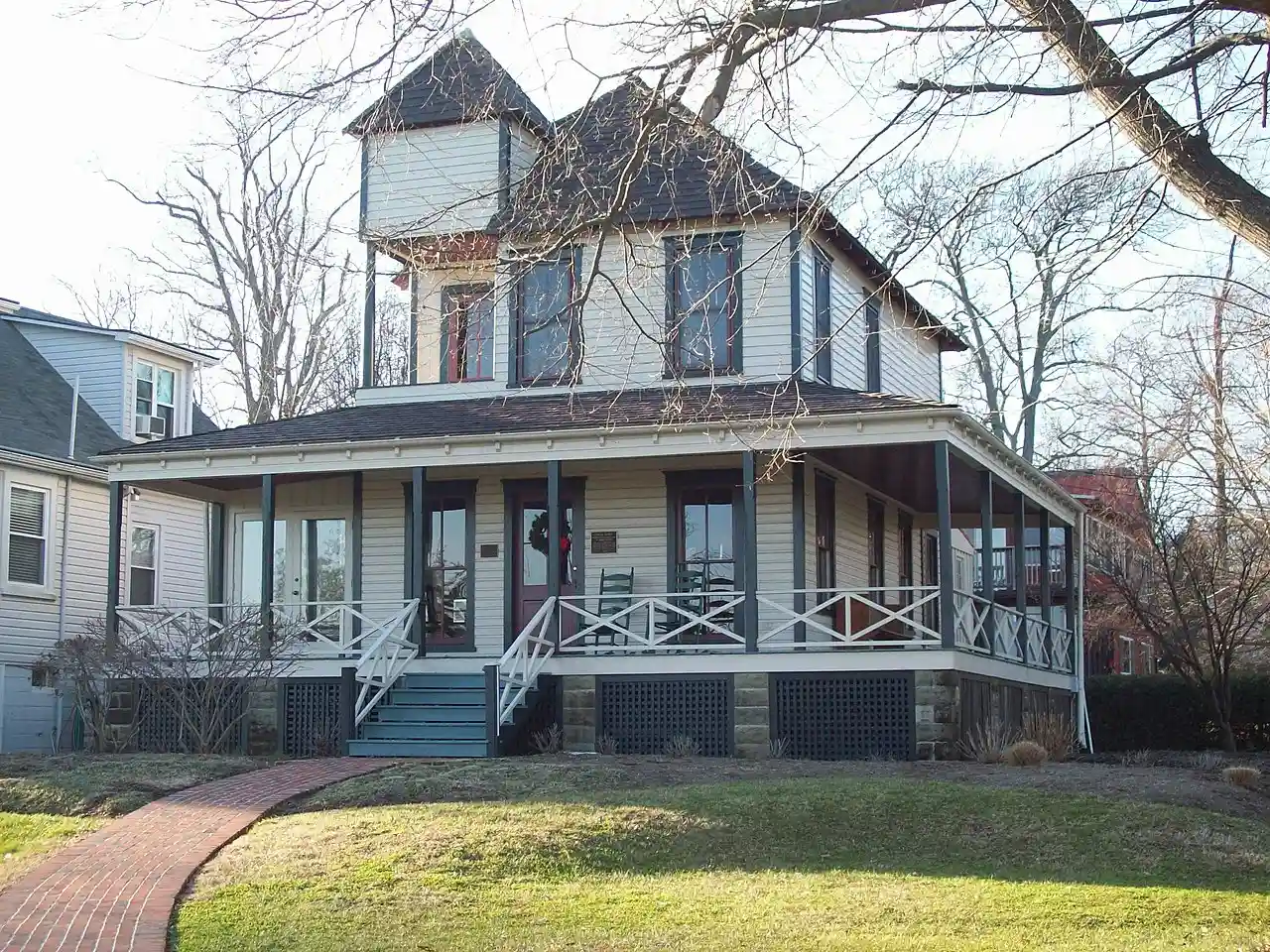The Douglass Summer House is a historic home at Highland Beach, Anne Arundel County, Maryland, United States. It was built in 1894–95, is one of the first built in the small community of Highland Beach and is the oldest structure remaining at that place. The house was built in 1894-95 by Major Charles Douglass, son of Frederick Douglass (1818-1895). It is a -story Queen Anne style frame dwelling with a one-story wraparound porch and a corner tower. A meticulous renovation in 1987 by architect Charles Bohl maintained a majority of the original interior and exterior fabric of the building. Read more on Wikipedia