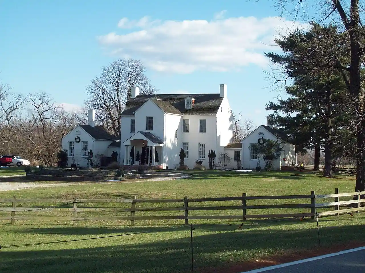 The Sandy Point Farmhouse is a historic home at Sandy Point State Park, Anne Arundel County, Maryland, United States. It is a five-part plan consisting of a two-story central block connected to two wings by single-story hyphens. It was built in an 18th-century style in the 19th century and typical of Maryland domestic architecture. The house was constructed about 1815 for John Gibson, a member of the Annapolis elite and a relative of Samuel Ogle, an 18th-century Governor of Maryland. Read more on Wikipedia
