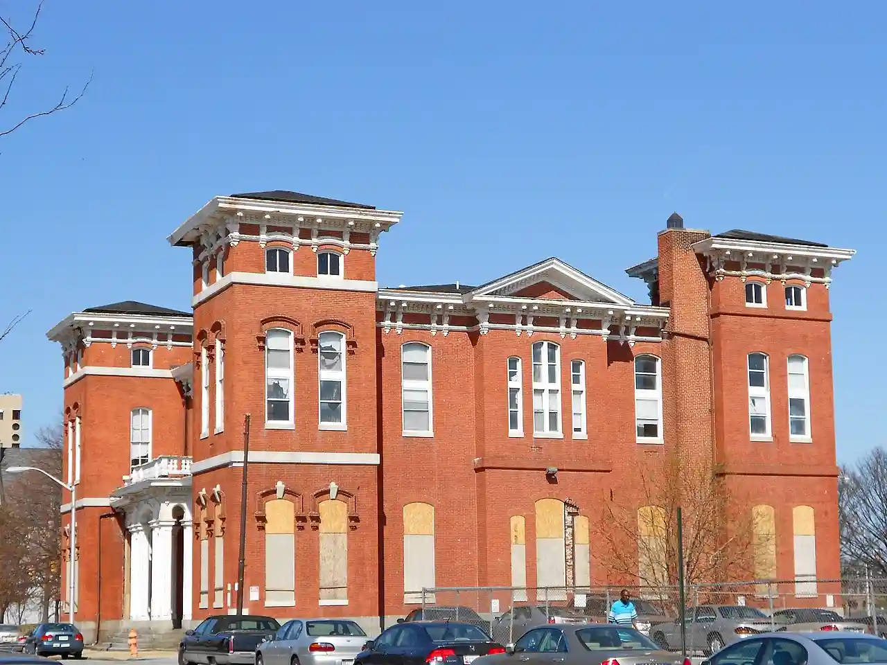 Eastern Female High School, also known as Public School No. 116, is a historic female high school located on the southeast corner of the 200 block of North Aisquith Street and Orleans Street, in the old Jonestown / Old Town neighborhoods, east of Downtown Baltimore and now adjacent to the recently redeveloped Pleasant View Gardens housing project / neighborhood of Baltimore, Maryland, United States. It was built in 1869-1870 and is typical of the Italian Villa mode of late 19th-century architecture. It was dedicated in a large ceremony with speeches later published in a printed phamplet and attending crowds in early 1870. Old Eastern High is a two-story brick structure that features a square plan, three corner towers (northwest, southwest, southeast), and elaborate bracketing cornices, with a similar wood decorated porch/portico over front entrance on its west side facing Aisquith Street. Read more on Wikipedia