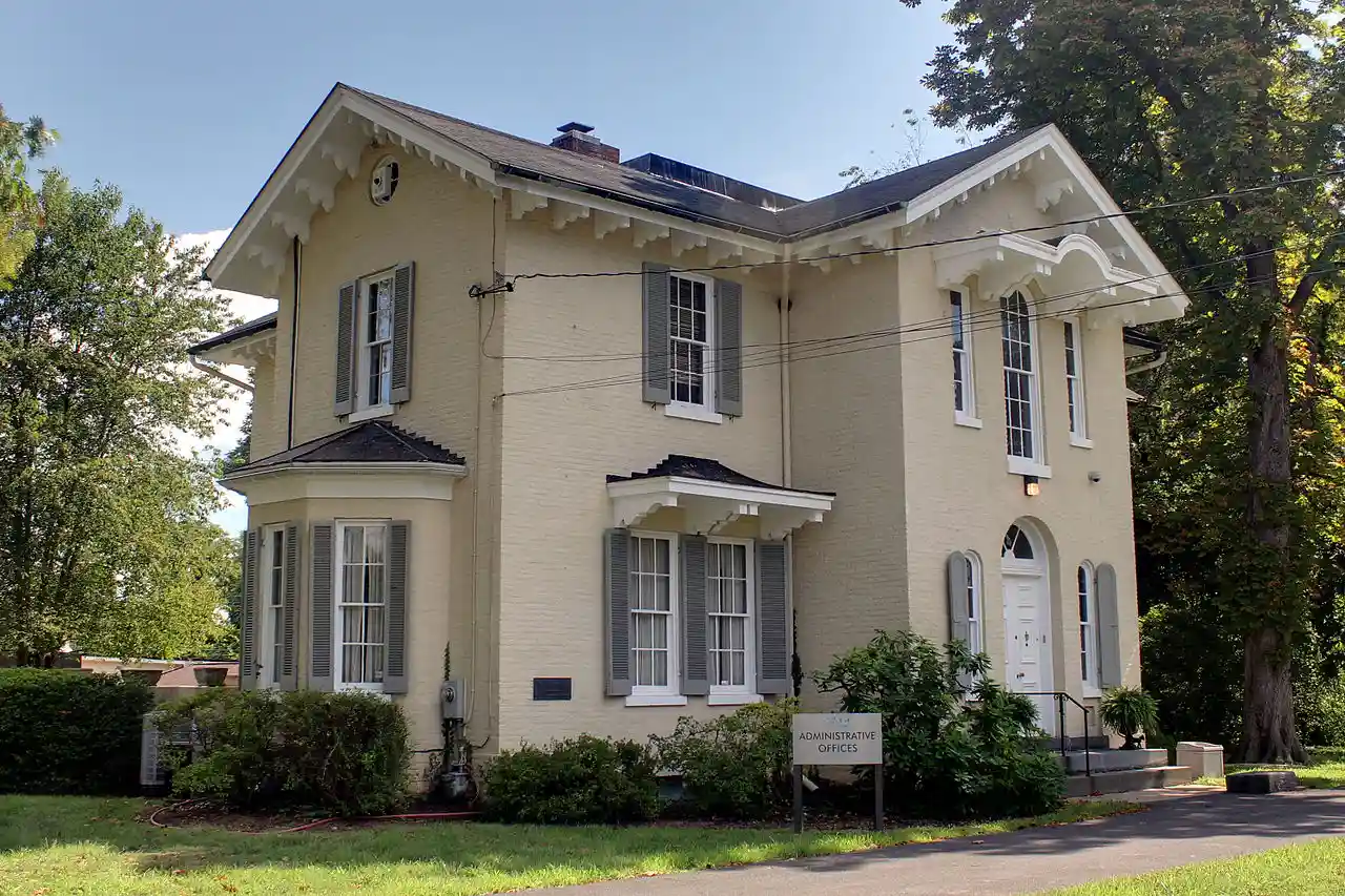 Evergreen on the Falls, also known as the Snyder-Carroll House, is an historic 19th century home overlooking the Jones Falls valley and located at Baltimore, Maryland, United States. It is a -story, brick mansion in a rural version of the Victorian Italianate style. A serious fire in the early 1970s destroyed the furnishings and most of the interior. It was built about 1860 and was the home of the supervisor of the Mount Vernon Mills, Albert H. Carroll. It is headquarters of the Maryland Society for the Prevention of Cruelty to Animals. Read more on Wikipedia