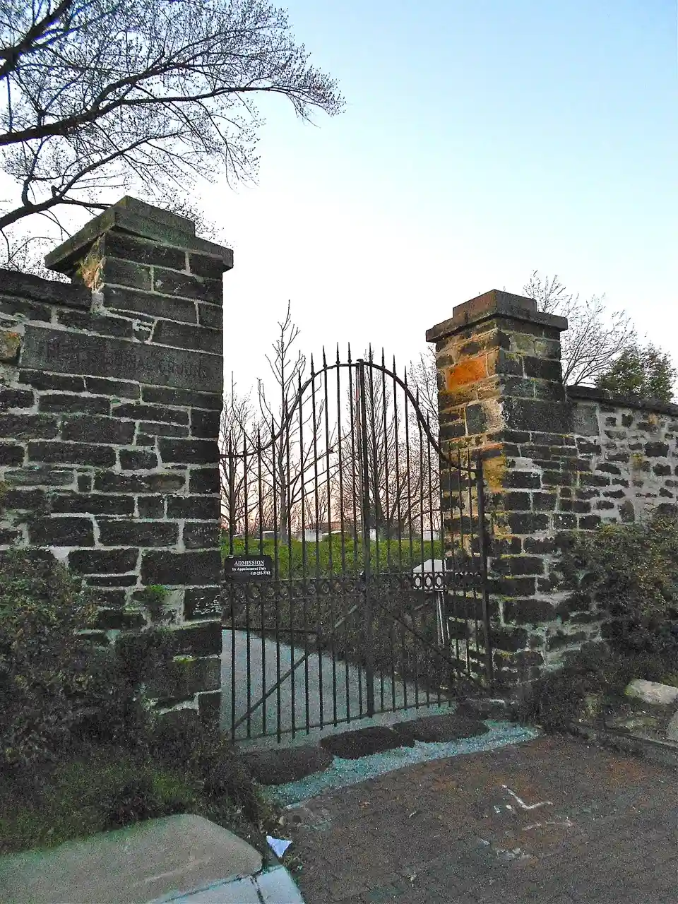 Friends Burial Ground is a historic Quaker cemetery in Baltimore, Maryland, United States. It is the earliest cemetery in Baltimore, established in 1713, and in size. It contains a total of approximately 1,900 small, simple grave markers, arranged in compact rows interspersed with large trees. The graveyard is surrounded by a fieldstone wall high, built in the 1860s, now covered with moss, roses, and ivy. Read more on Wikipedia