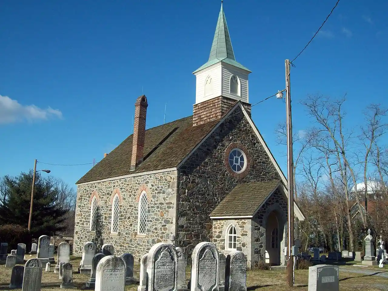 Old Salem Church and Cemetery is a historic Lutheran Church and adjacent cemetery located at Catonsville, Baltimore County, Maryland. The main part of the 1849 Gothic Revival church building is a three bay, irregular stone structure approximately 28 feet wide and 42 feet long. It features a gable roof, a short boxy steeple, an entrance porch at the front and an apse at the rear. The interior features a gallery and organ loft has the original tracker organ, which is still hand pumped by a wooden lever on the north side of the case. From early on, the ground to the south of the church was laid out as a cemetery. The church was founded by German Lutheran immigrants. Read more on Wikipedia