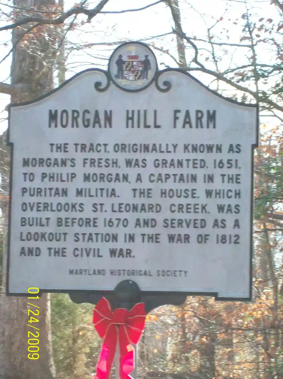 Morgan Hill Farm, also known as Morgan's Fresh or Hill Farm, is a historic home located at Lusby, Calvert County, Maryland. It is a -story gable-roofed frame house of a T-shaped plan, with single exterior chimneys on each of the three exposed ends. The original building appears to have been built about 1700, with extensively remodeled in the early 19th century. In 1952 a large rear wing was added to the house. Outbuildings include a one-story log servants' quarter, a log smokehouse, and a large tobacco barn. Read more on Wikipedia