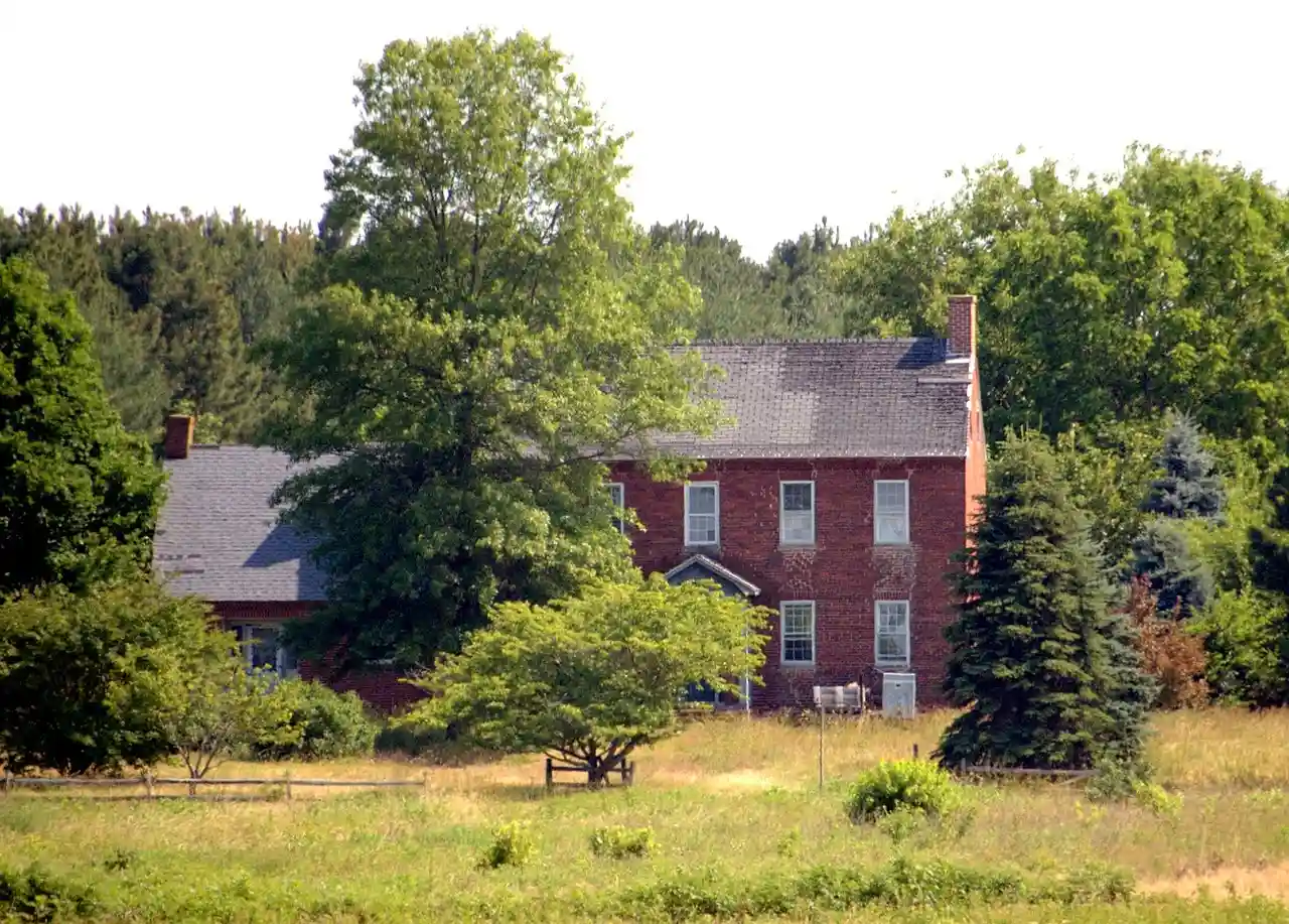 Brick House Farm, also known as the Richard Jarrell Farmhouse, is a historic home in Greensboro in Caroline County, Maryland, United States. It was built about 1823 and is a five-bay-long, two-story brick āIā house with a kitchen addition dating to the 1970s. The main house measures long by deep. It is one room deep and features a gable roof. The perimeter of the estate is wooded by pine and cherry trees. A small orchard is located at the front of the property. The remaining barn and chicken coop lays behind the house. The house is full of intricate wood work and features several rooms on each floor. The stairs continue up to the attic which goes above the entire house and one can stand up without having to duck. Read more on Wikipedia