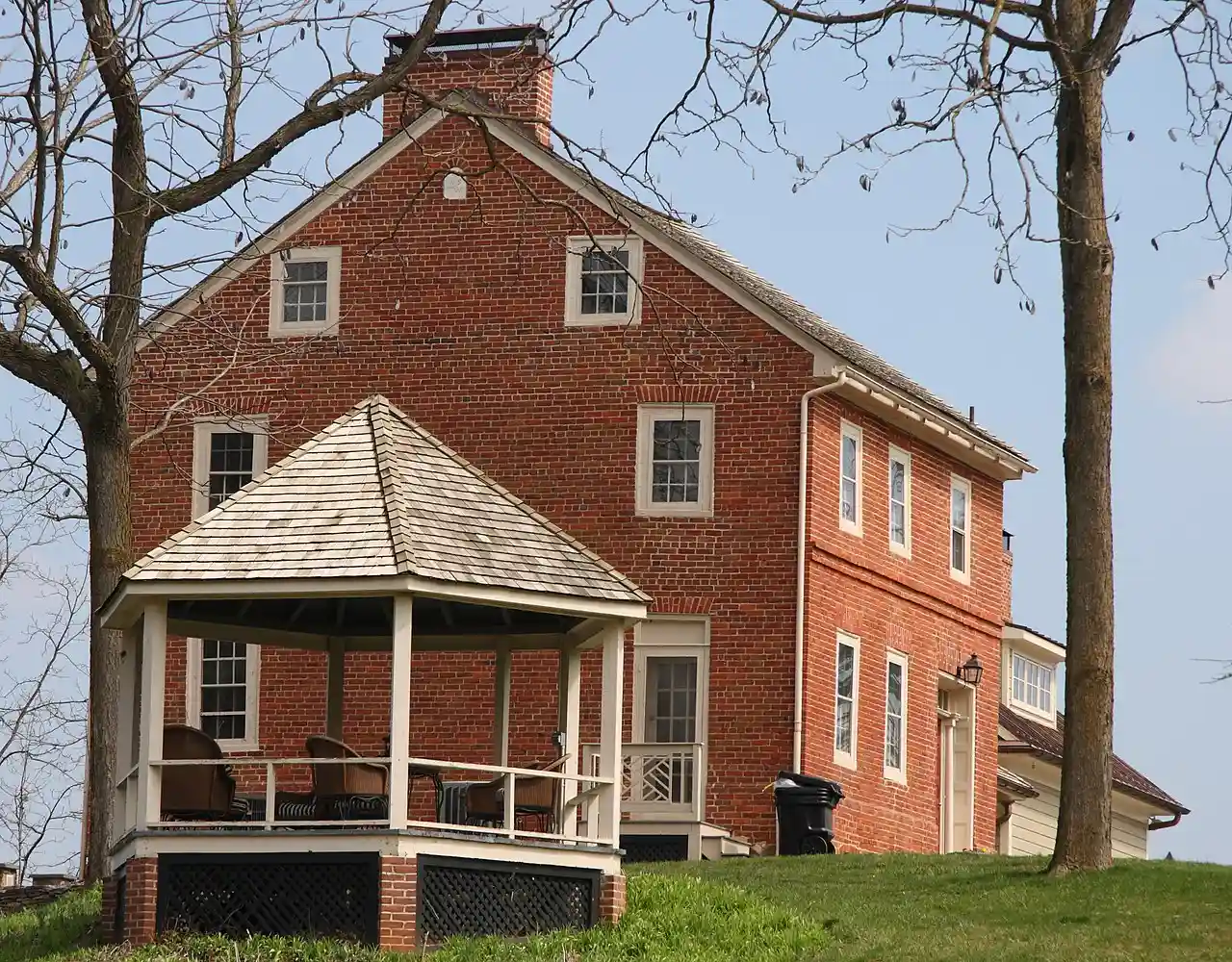 Hard Lodging is a historic home located at Union Bridge, Carroll County, Maryland, United States. It is built on a small cliff overlooking the site where its first owner, Solomon Shepherd, had a mill that is no longer standing. The house was built in three stages: the middle section, a -story brick structure, was probably built first; the main section of the house is attached to the west and is a Federal-style, three-by-two-bay, -story house with an interior gable-end chimney. Hard Lodging is currently a private residence and is no longer owned by the Historical Society. The home is an example of Pennsylvania German architecture. Read more on Wikipedia