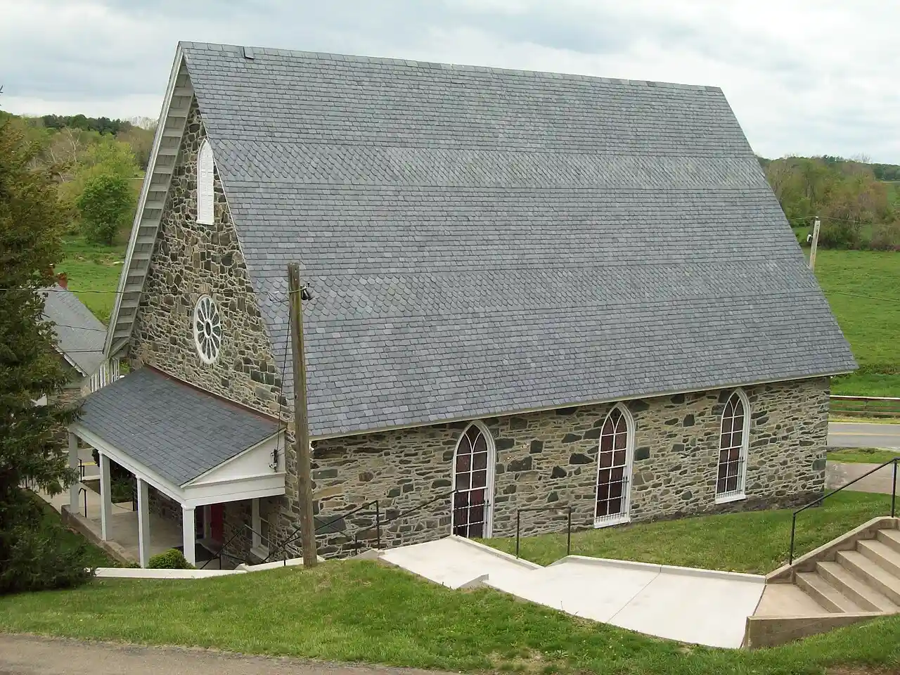 Rock United Presbyterian Church is a historic Presbyterian church located at Elkton, Cecil County, Maryland. It is a rectangular building of uncoursed rubble stone construction, three bays wide by three deep, with a steeply pitched slate-clad gable roof. It was originally constructed in 1761, and remodeled to its current Victorian Gothic influenced appearance in 1872 and 1900. Also on the property is a -story, stone Session House originally constructed in 1762 and a modern white stucco Church House constructed in 1953. The church is significant due to its association with the early Scotch-Irish immigrants to Maryland. Read more on Wikipedia