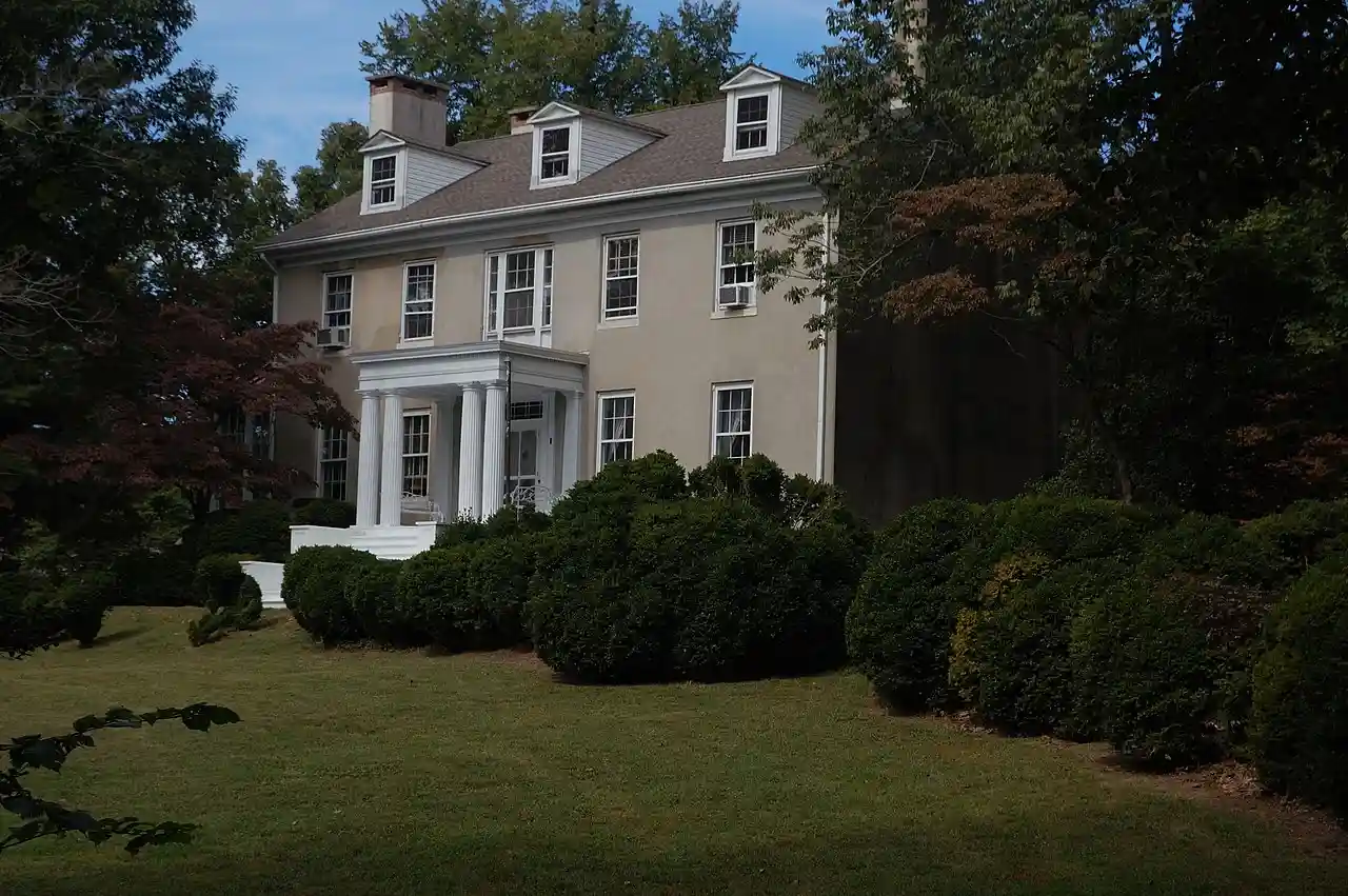 Woodlands is a historic home located at Perryville, Cecil County, Maryland, United States. It appears to have been constructed in two principal periods: the original -story section built between 1810 and 1820 of stuccoed stone and a -story rear kitchen wing; and two bays of stuccoed brick, with double parlors on the first story, and a one-story, glazed conservatory constructed between 1840 and 1850. The home features Greek Revival details. Also on the property are a 2-story stone smokehouse and tenant house, a small frame barn and corn house, a square frame privy with pyramidal roof, a carriage house, frame garage, and a large frame bank barn. Read more on Wikipedia