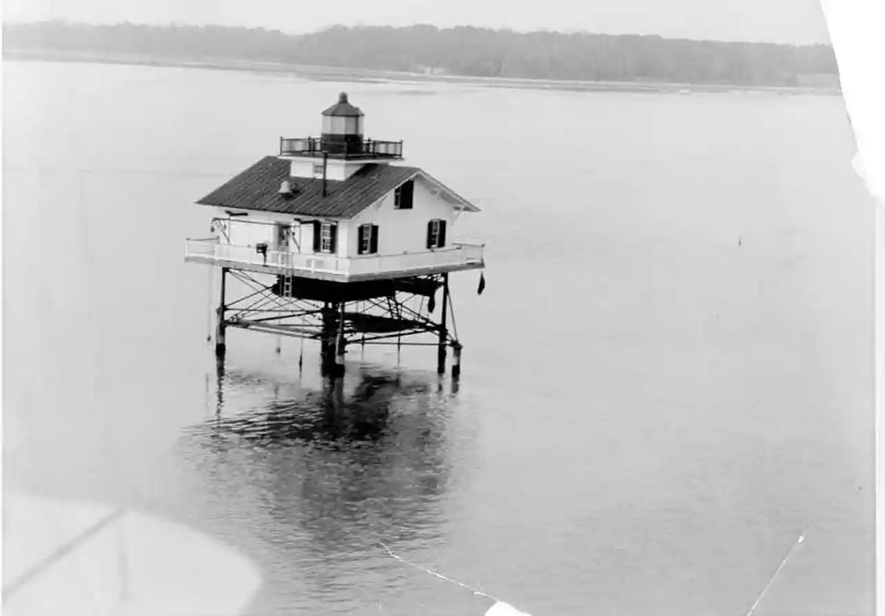 The Upper Cedar Point Light was a screw-pile lighthouse in the Potomac River in Maryland. It was first lit in 1867 and served, except for a brief period of inactivity, until being dismantled in 1963. Read more on Wikipedia