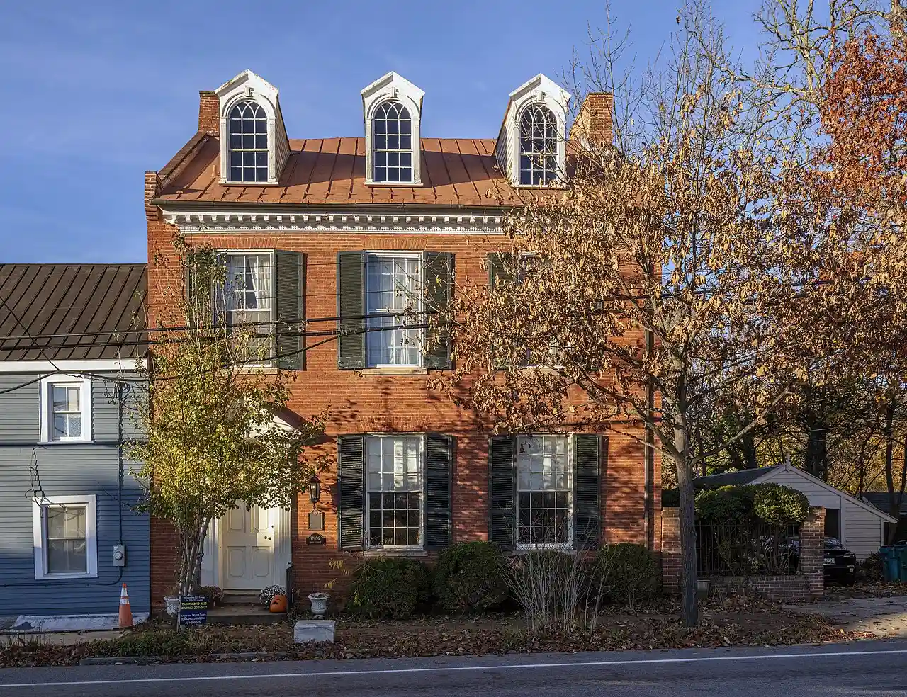 The Abraham Jones House is a historic home located at Libertytown, Frederick County, Maryland, United States. It is a -story, Flemish bond brick house attached to a later frame structure. Roof features include low "parapets" formed by the extension of the gable walls and at each end of the roof ridge are single flush gable chimneys. The main entrance door is an example of Federal period craftsmanship and design. It is one of the finest Federal houses in Maryland. Read more on Wikipedia