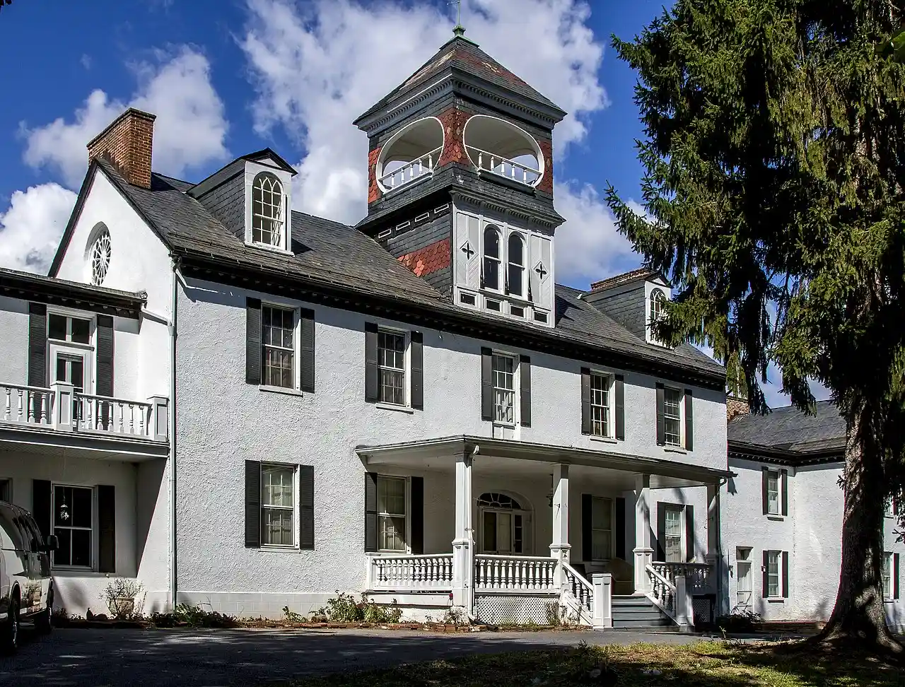 Arcadia is a historic house located between Frederick and Buckeystown, Maryland. Erected about 1790, the house overlooks Monocacy National Battlefield. The house was extensively altered in the late 19th century and now possesses an elaborate balconied tower. The interior was also extensively updated at that time. Read more on Wikipedia
