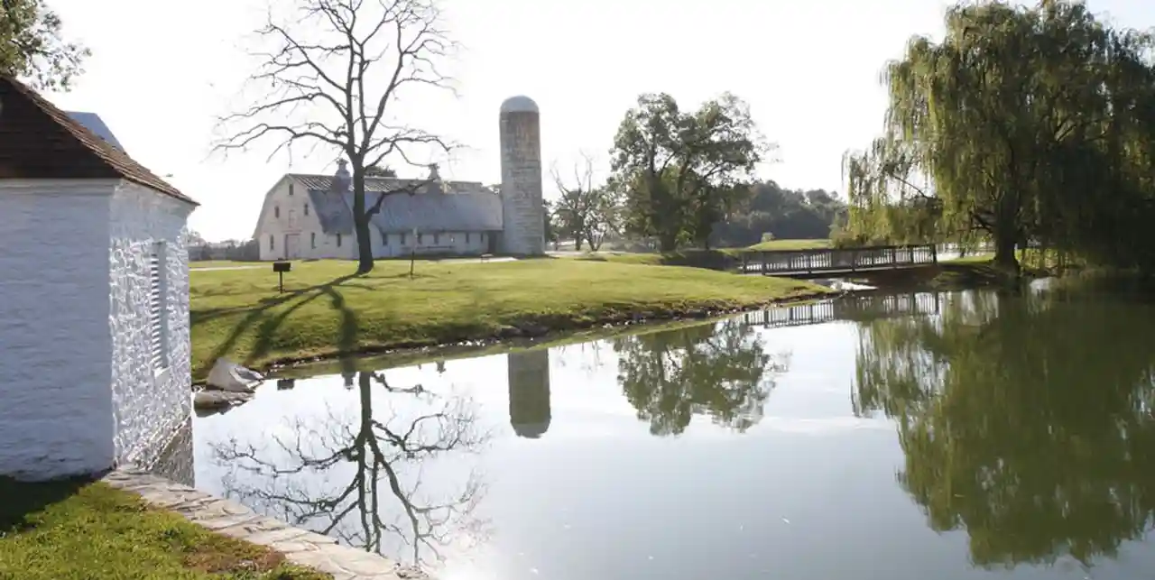 The Nallin Farm Springhouse and Bank Barn are closely associated with the Nallin Farm House on the grounds of Fort Detrick, Maryland, US. The barn is a good example of a fieldstone-built bank barn with a byre on the lower level and an earth ramp on the opposite side providing access to a haymow. Read more on Wikipedia