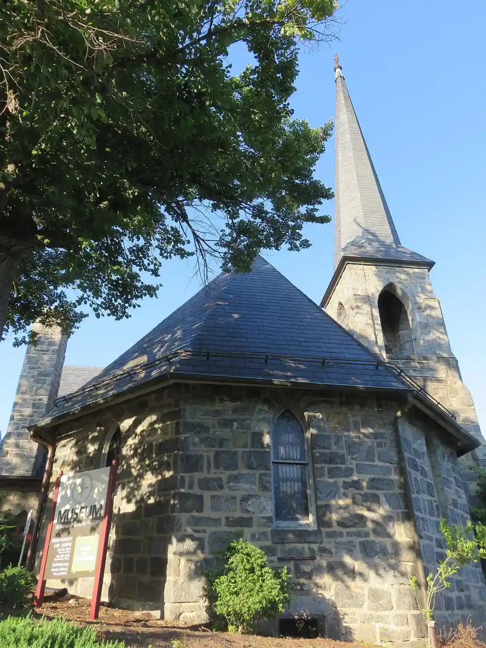 First Presbyterian Church is a historic church in Ellicott City, Howard County, Maryland adjacent to the Howard County Circuit Courthouse. The church is a cruciform-shaped structure made of granite stone construction. The building was expanded and rebuilt after a basement collapse during construction in April 1894. The congregation relocated in 1960. Mrs. James A. Clark, Sr. purchased the church and donated it to the Howard County Historic Society. Read more on Wikipedia