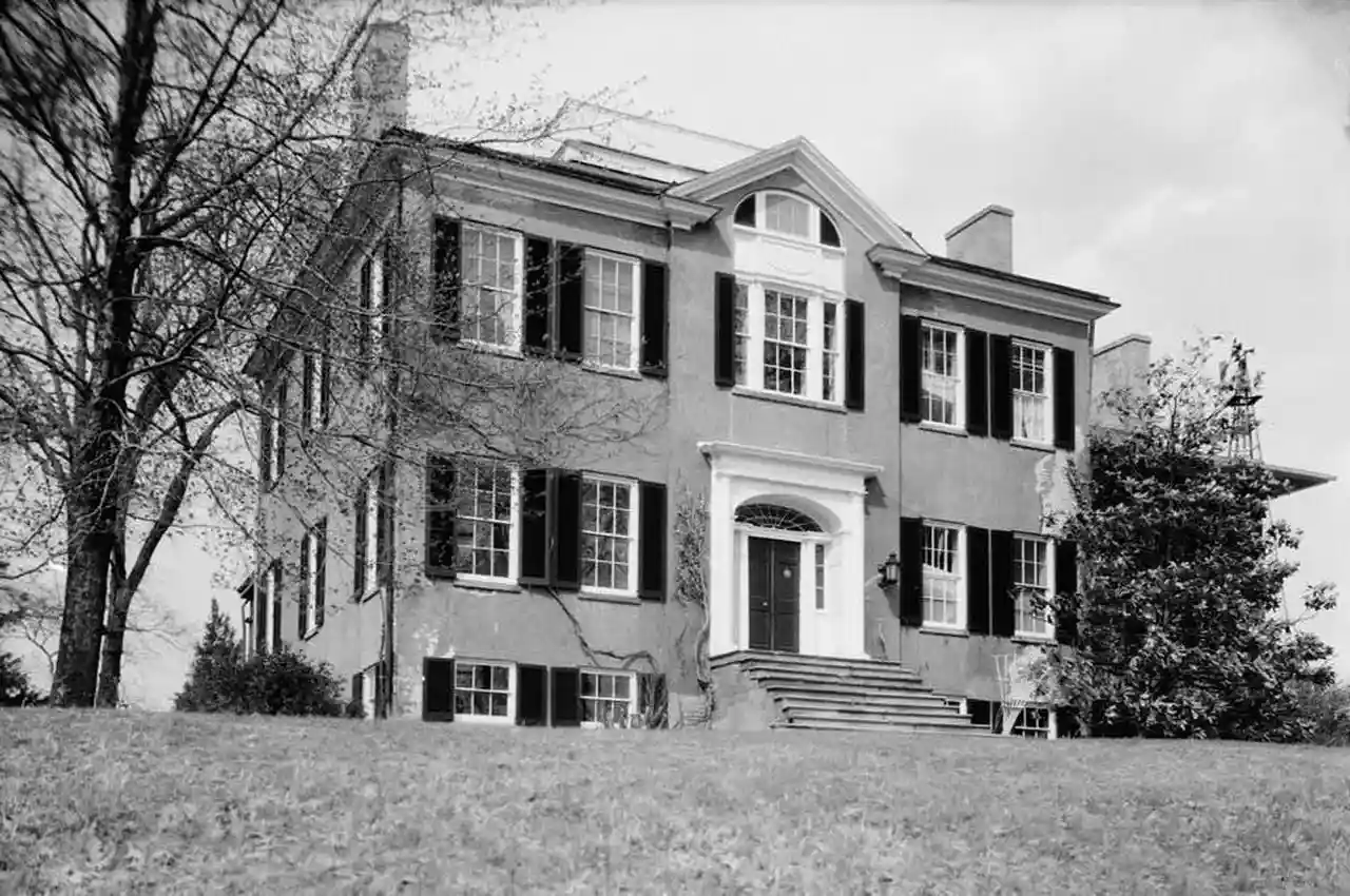 Bowieville is a historic home located near Upper Marlboro in Prince George's County, Maryland, United States. It is an elegant two-part plantation house of the late Federal style, built of brick and covered with stucco. The architectural detail is transitional between the Federal and Greek Revival styles. Read more on Wikipedia