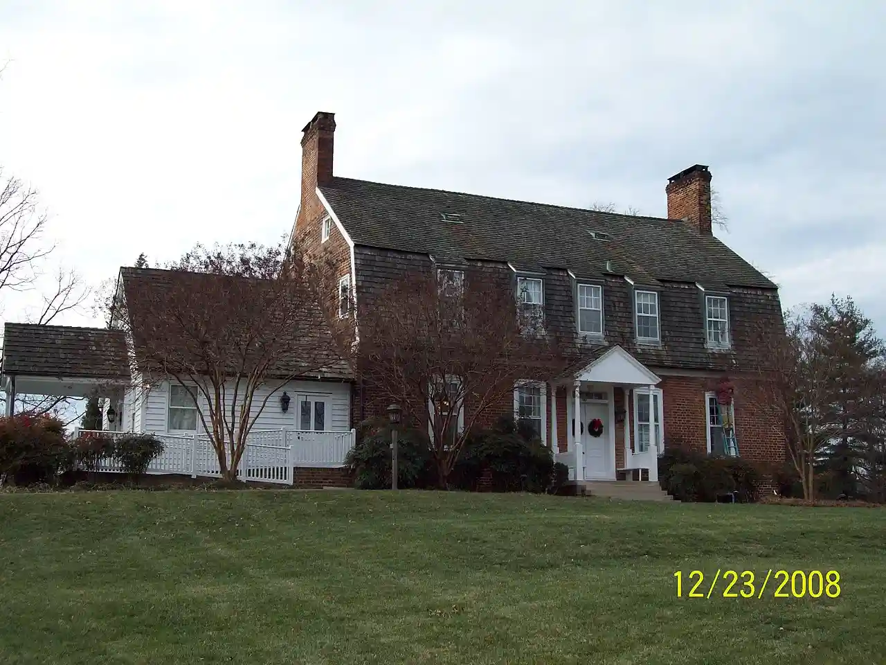 Snow Hill is a manor house located south of Laurel, Maryland, off Maryland Route 197, in Prince George's County. Built between 1799 and 1801, the -story brick house is rectangular, with a gambrel roof, interior end chimneys, and shed dormers. It has a center entrance with transom and a small gabled porch. A central hall plan was used, with elaborate interior and corner cupboards. The original south wing was removed and rebuilt, and the home restored in 1940. The Late Georgian style house was the home of Samuel Snowden, part owner of extensive family ironworks, inherited from his father Richard Snowden. and is now owned and operated by the Maryland-National Capital Park and Planning Commission as a rental facility. Read more on Wikipedia