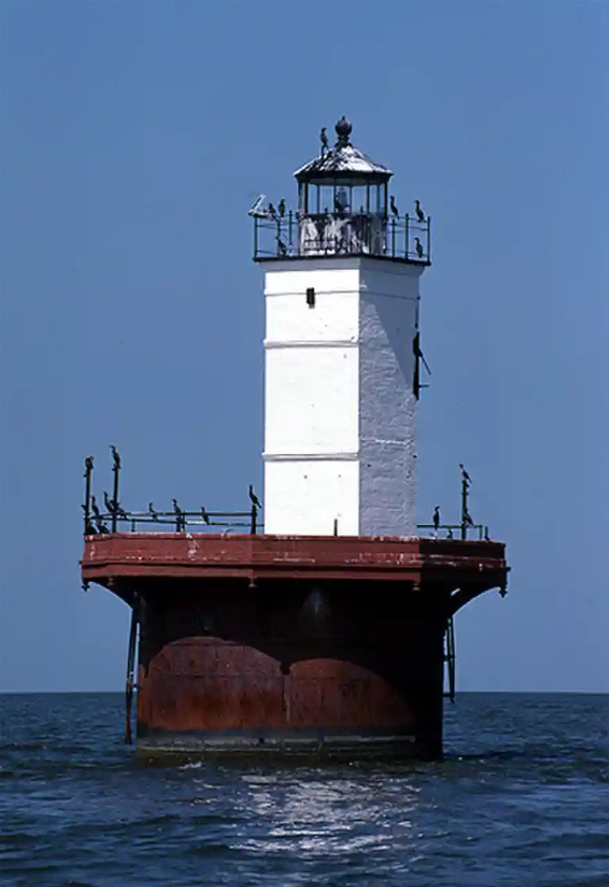 Solomons Lump Light is a lighthouse in the Chesapeake Bay, the abbreviated remains of a caisson light built in 1895. That structure replaced a screw-pile light built on the same spot in 1875, which in turn superseded the Fog Point Light. Read more on Wikipedia