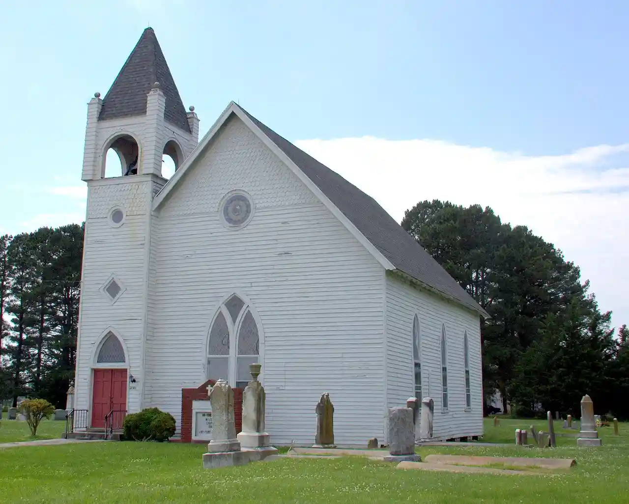 St. Peter's Methodist Episcopal Church is a historic Methodist Episcopal church located at Hopewell, Somerset County, Maryland. It is a large single-story gable-front Gothic Revival frame church with four-story bell tower. It was built in 1850 and extensively reworked in 1901. Also on the property is a cemetery with 19th and 20th century markers. Read more on Wikipedia